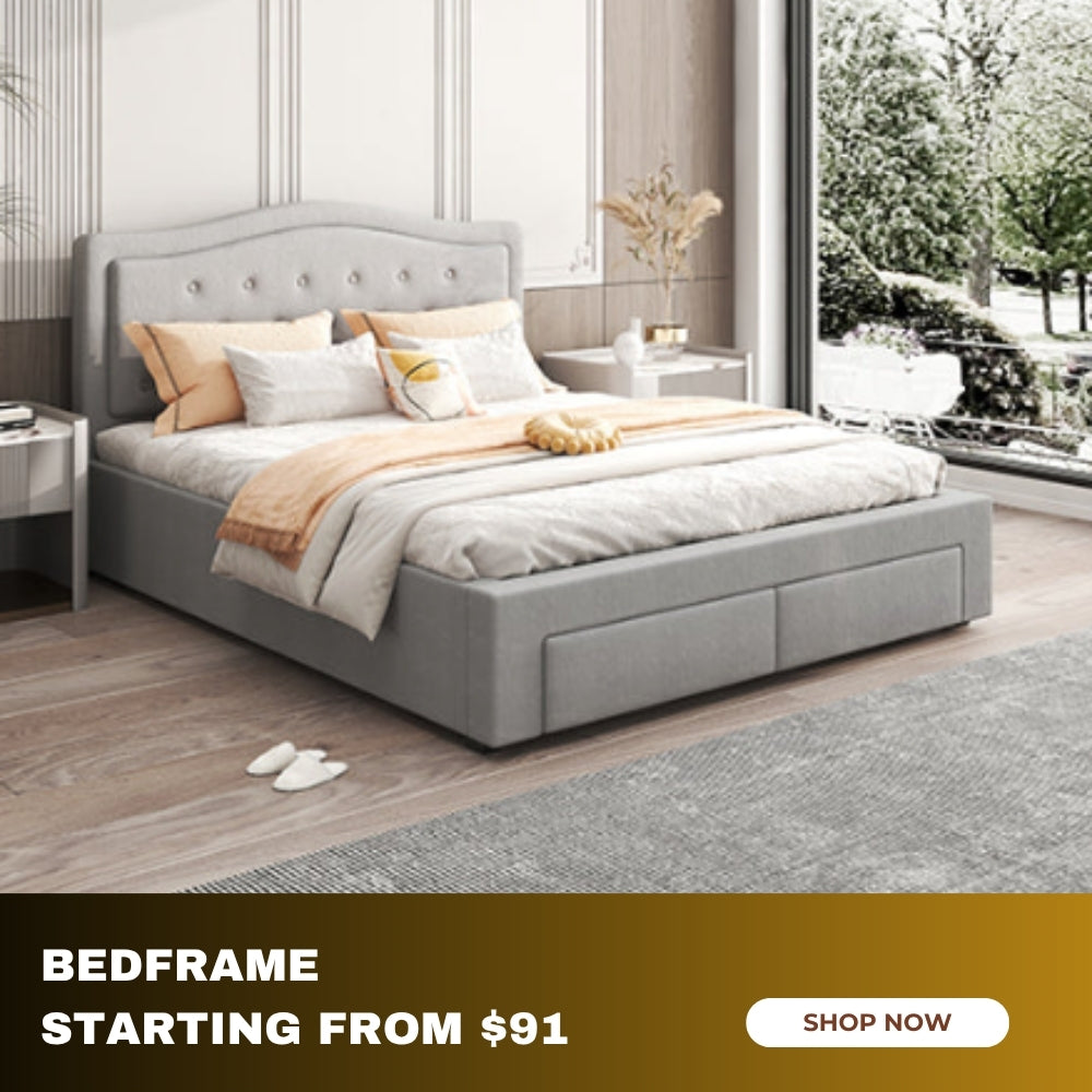 Artiss Compression Bed Frame Queen Size No Assembly Vacuum High Density Sponge Boucle Cream White