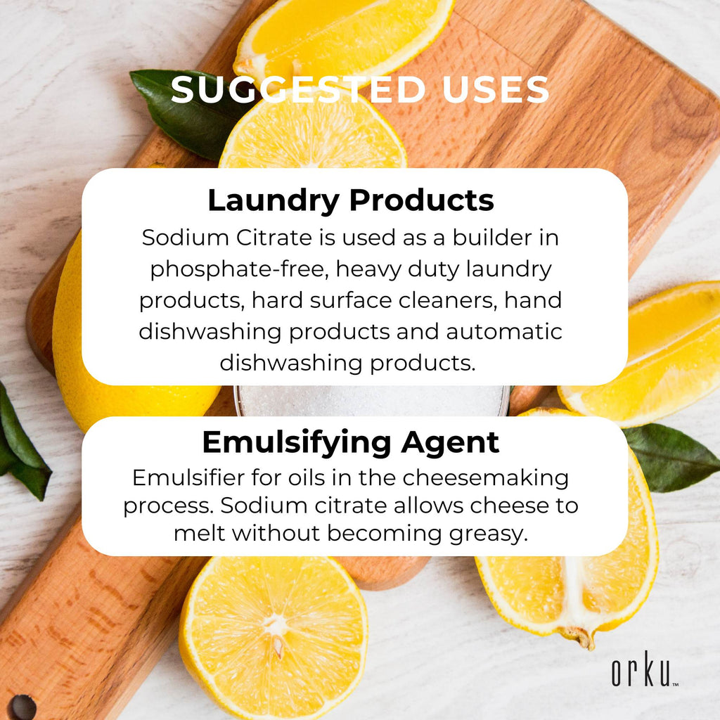 Sodium Citrate is used as a builder in phosphate-free, heavy duty laundry products, hard surface cleaners, hand dishwashing products and automatic dishwashing products.