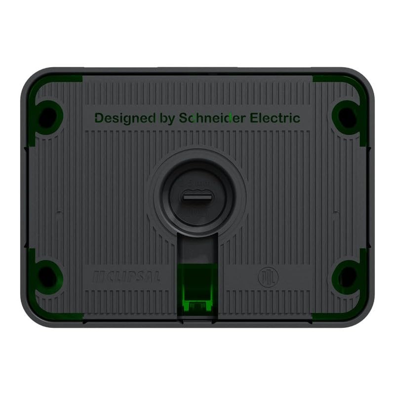 Clipsal Iconic Outdoor Twin Switched Socket Outlet is rated 10A, 250V, the range has an IP54 rating with protection against dust and water ingress. It has an black finish. Specification: Outlet poles configuration: 1P + E, Control type: ON/OFF button, rocker, Pin number: 6, Number of power socket outlets: 2, Fixing mode: by screws, by clipping locks, Local signalling: without light indicator, Device mounting: surface, wall mounted, Mounting position: horizontal, Type of installation: outdoor, [Ue] rated operational voltage: 250 V AC, [In] rated current: 10 A.