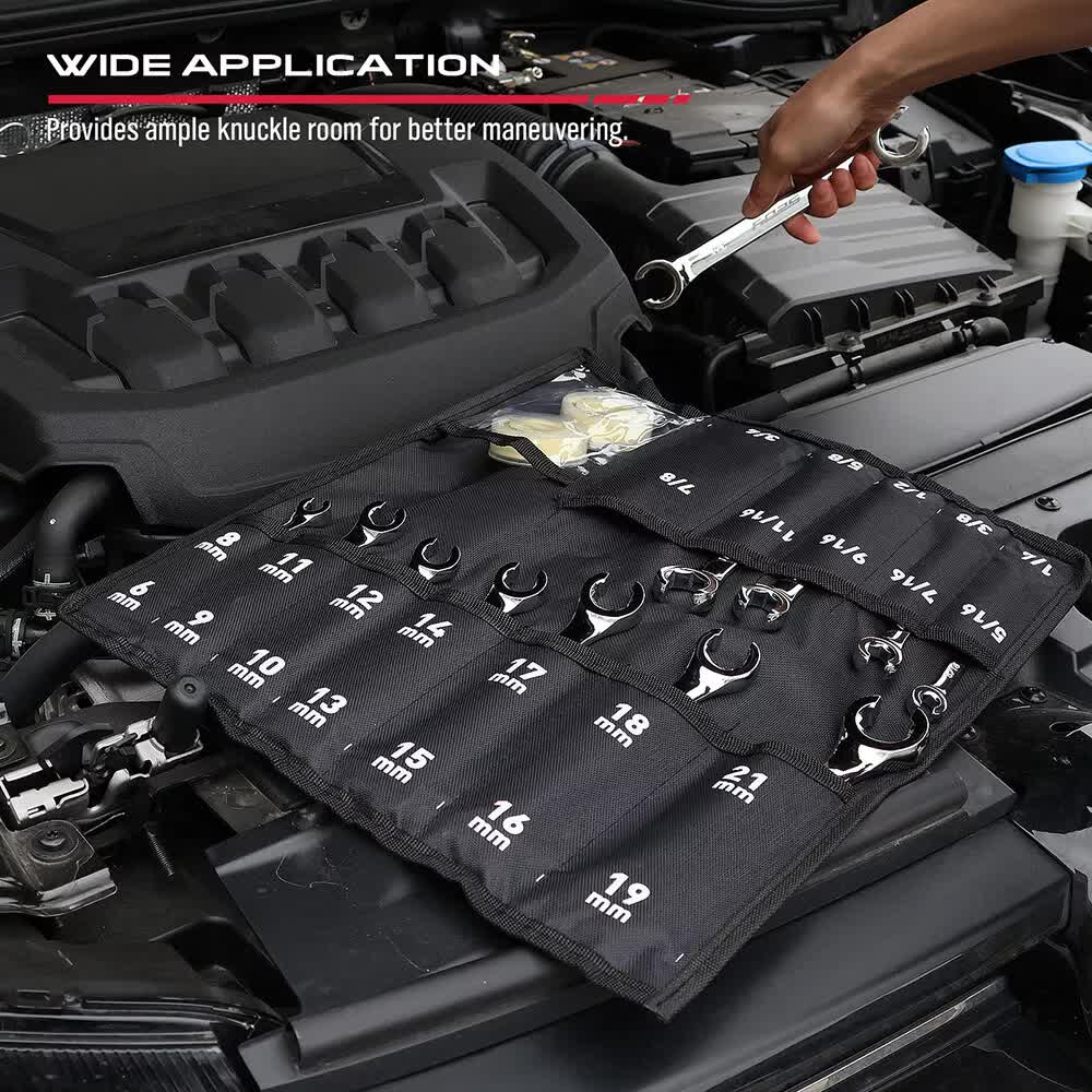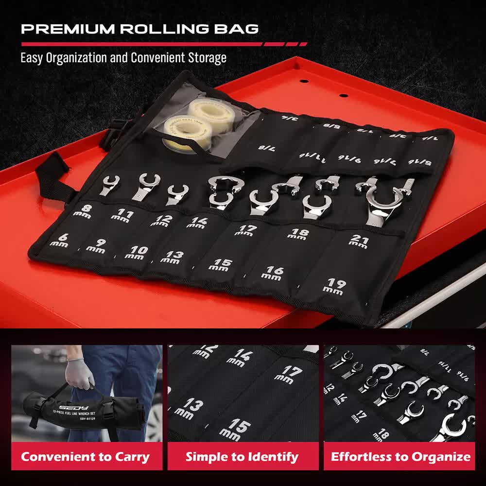 EASY ORGANIZATION All tools come in a convenient organizer pouch, keeping everything neatly stored and easily accessible for your next project. Whether you're a DIY enthusiast or a professional, this set covers all your flare nut wrench needs.
