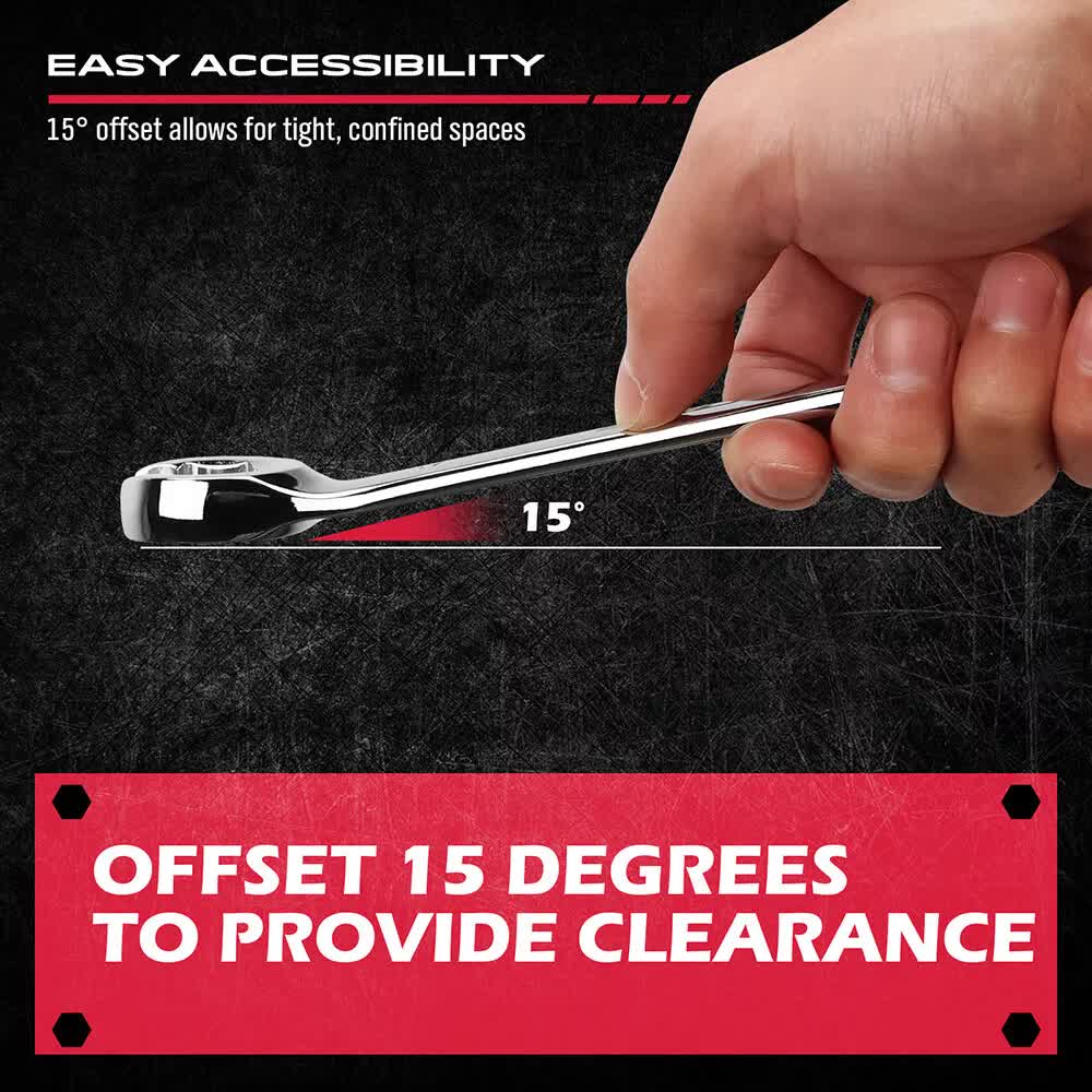 15 OFFSET DESIGN - The 15 offset heads provide extra knuckle room and allow access to tight, hard-to-reach spaces, making it perfect for fuel lines, brake lines, and other intricate repairs in confined areas.