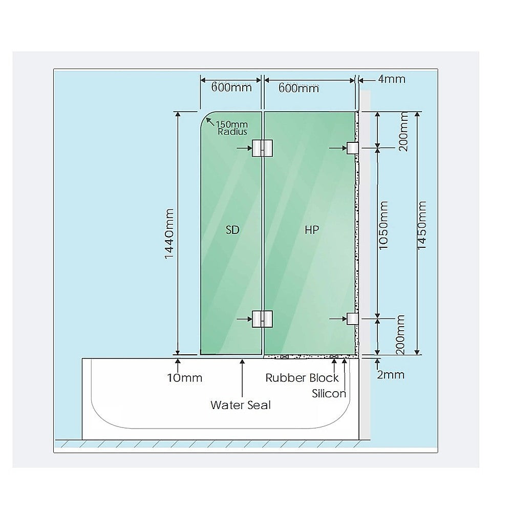 1200 x 1450mm Frameless Bath Panel x 1