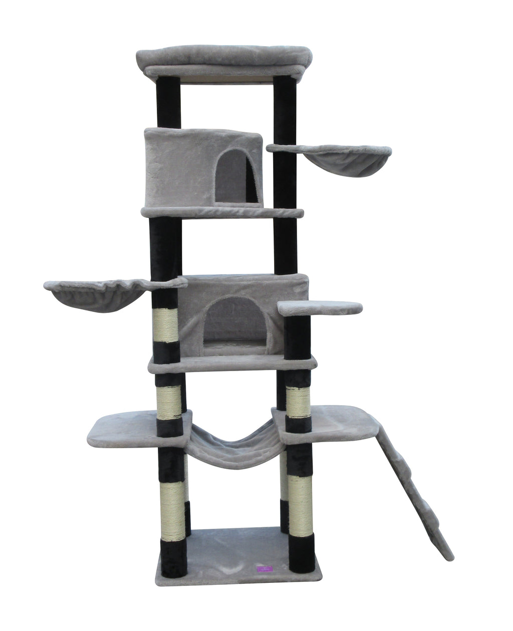 Our latest cat tree is the ultimate home for your cat. It combines scratching, perching, chasing, climbing and just plain fun all in one piece. The multiple platforms allow your cats to jump around, and the plush carpeted surface provides extra comfort.