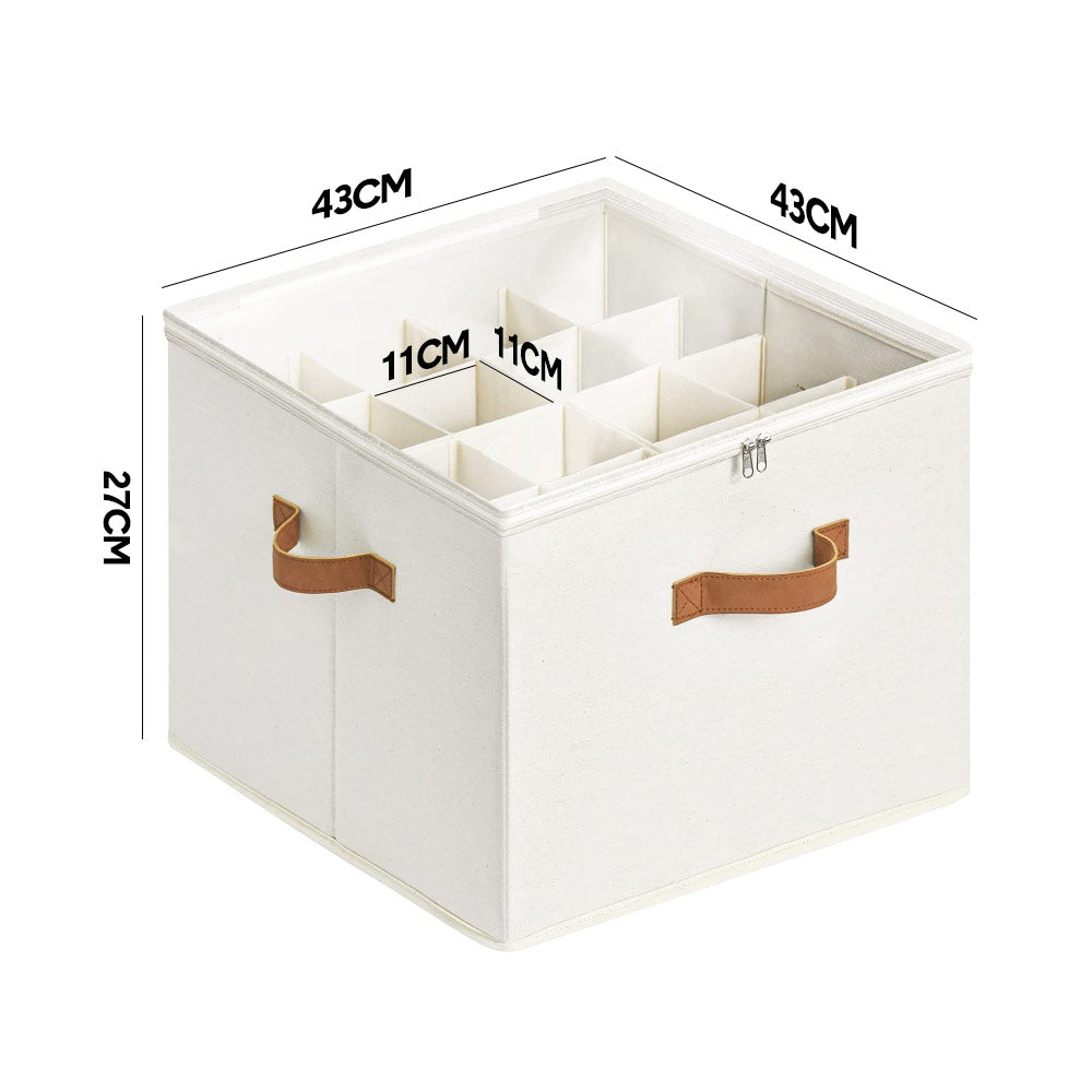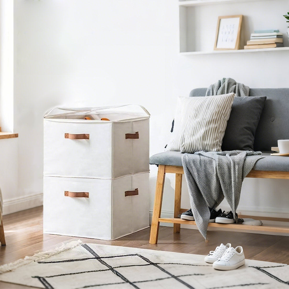 2 Pack Shoe Organizer Zipper Clear Lid Fabric Shoe Storage Box Space Saving Beige Shoe Holder for Closet and Adjustable Dividers Fits up to 16 Pairs