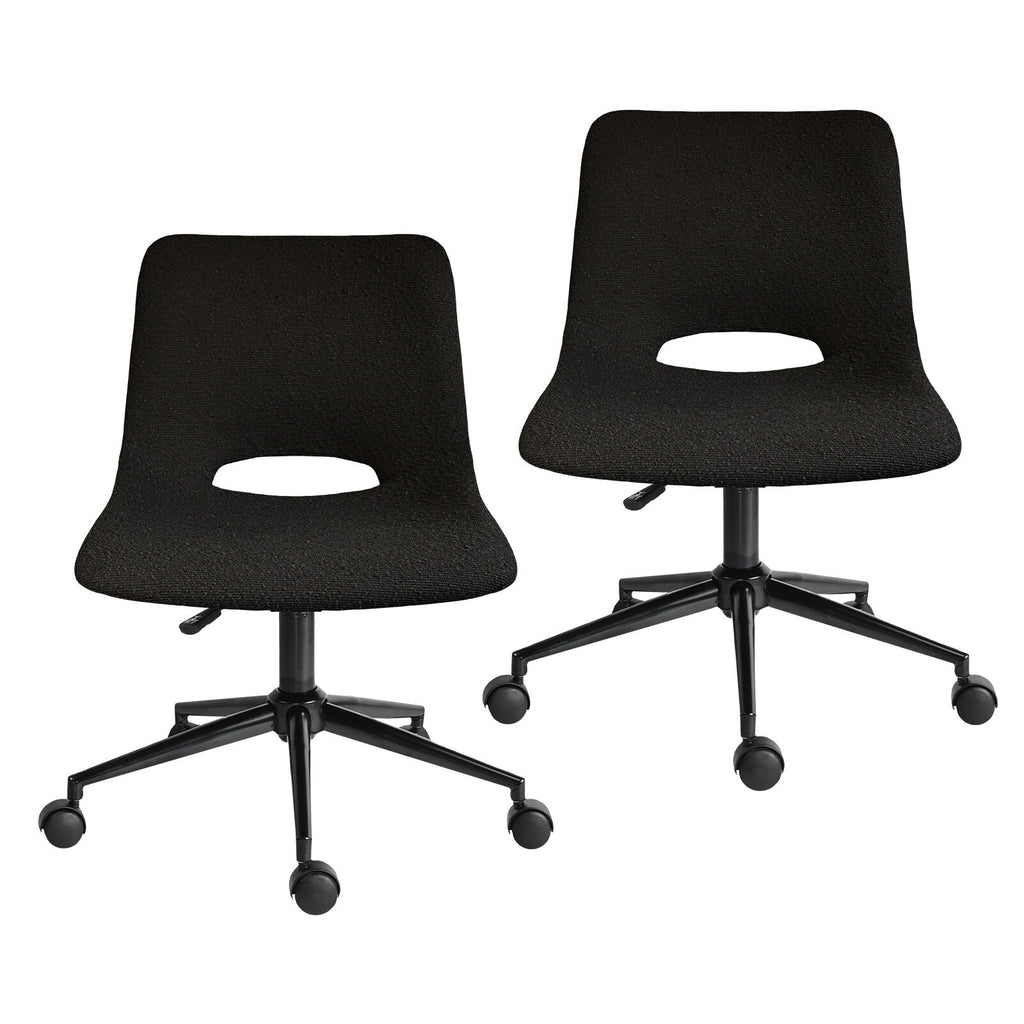 2 Set Office Desk Chair - Loop Yarn Fabric Home Swivel Chair Cut-Out Seat HALO BLACK