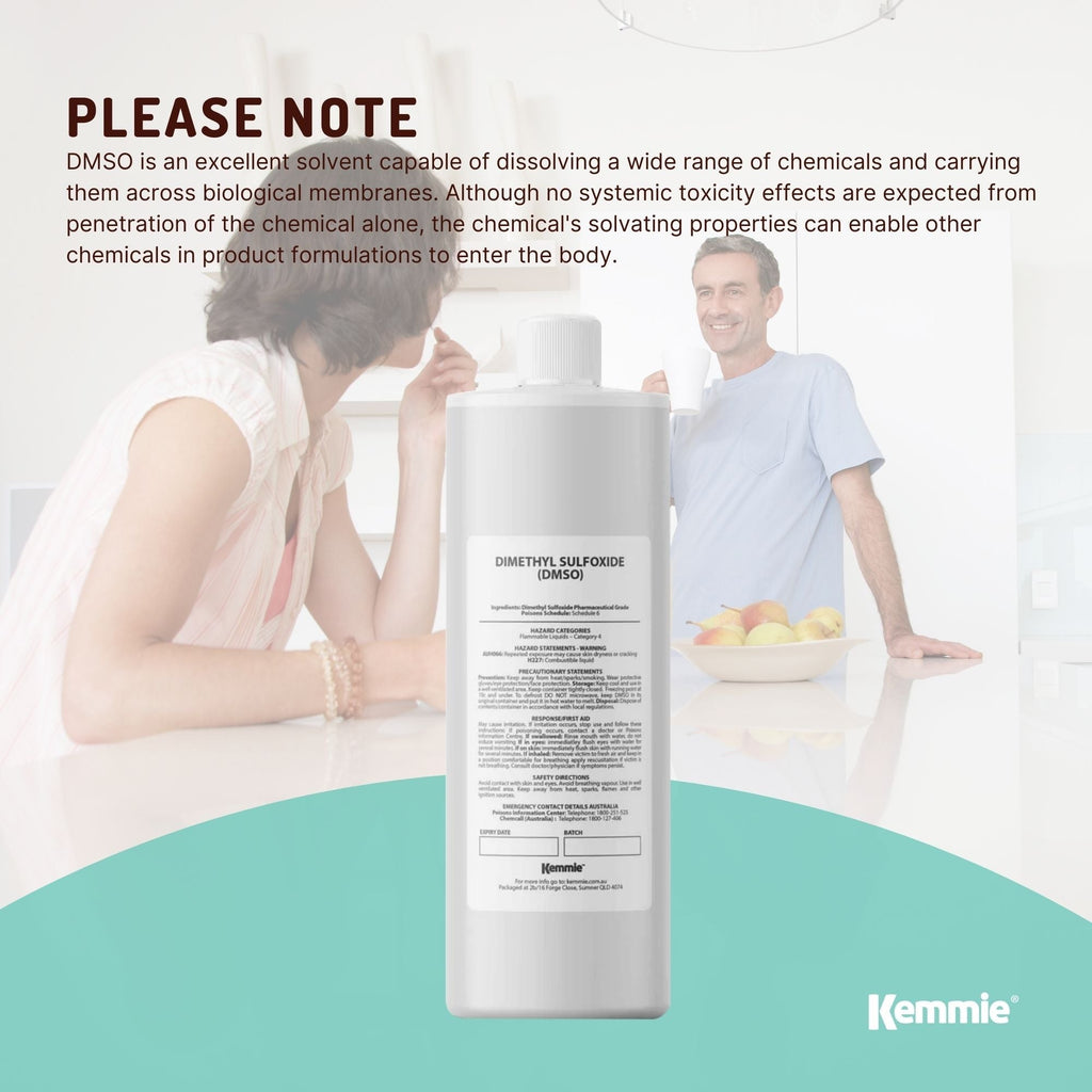 Please Note: DMSO is an excellent solvent capable of dissolving a wide range of chemicals and carrying them across biological membranes. Although no systemic toxicity effects are expected from penetration of the chemical alone, the chemical's solvating properties can enable other chemicals in product formulations to enter the body.