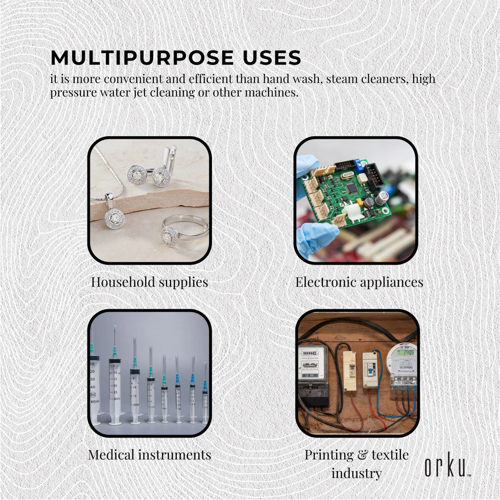 It is a microprocessor-controlled device that uses ultrasonic or high frequency sound waves to clean jewellery and other delicate items. The vibration of ultrasonic waves in the liquid will cause strong cavitation and emulsification. Millions of cavitation bubbles can be generated per second.