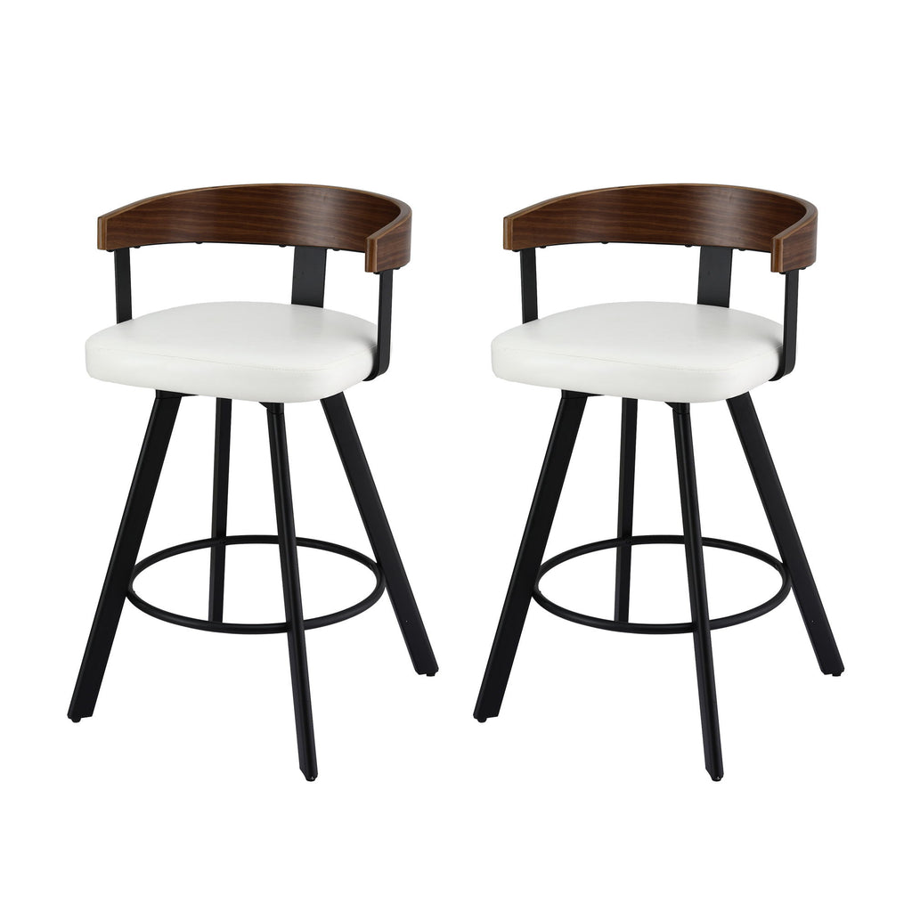 2x Artiss Bar Stools Swivel Kitchen Chairs Metal Legs Bentwood Counter White PU