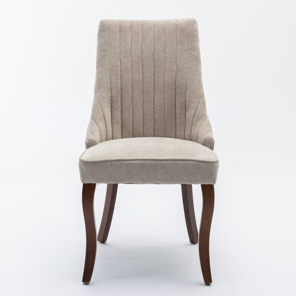 2x Fabric Channel Tufted Dining Chairs with Curved Wood Legs -Beige