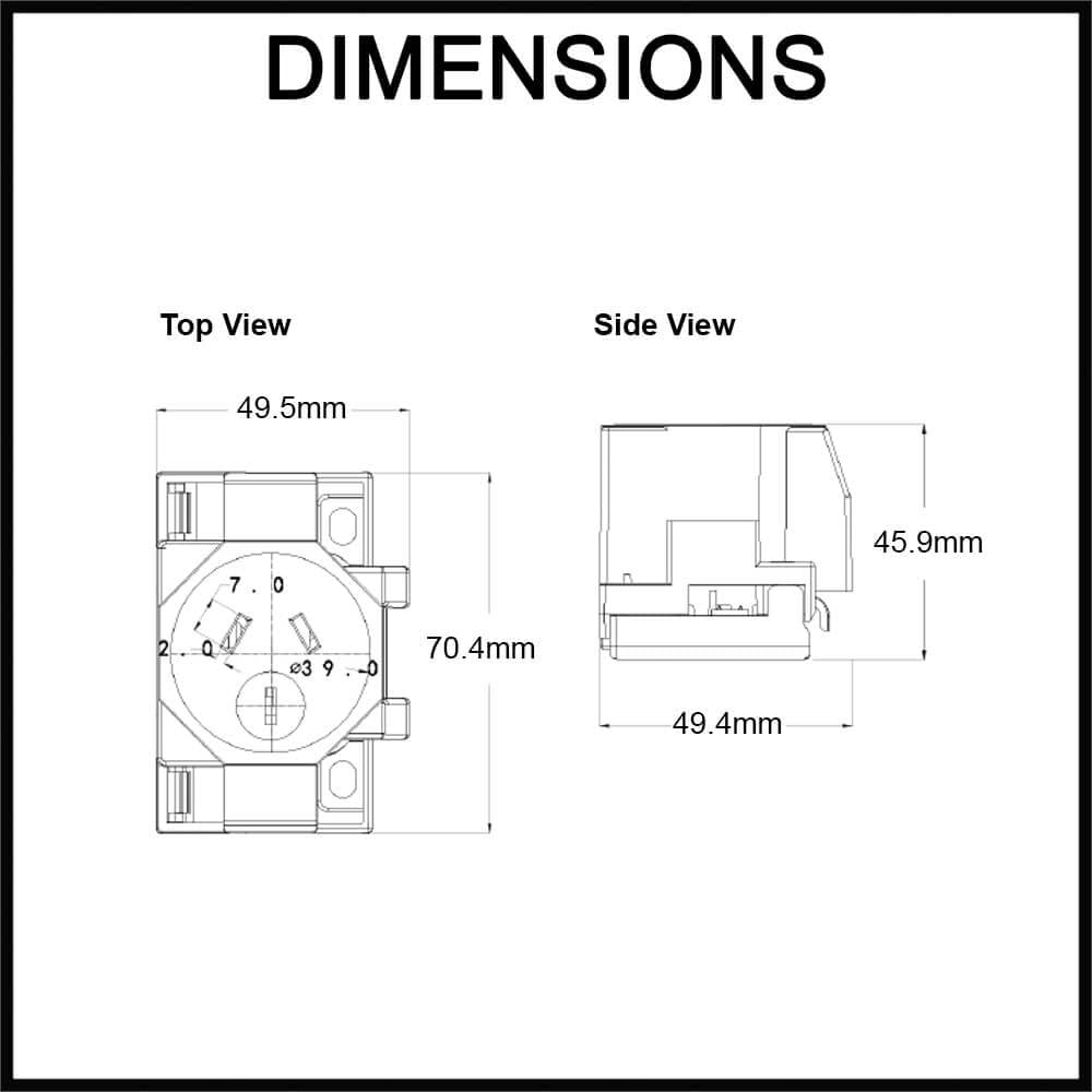 3-Pin Rear Connecting Single Surface Socket. 240V/50Hz Material: Polycarbonate. 10Amp current rating. Recommended cable: 1.0mm to 2.5mm. Product is earthed. Side entry for cable. Polarity sensitive.
