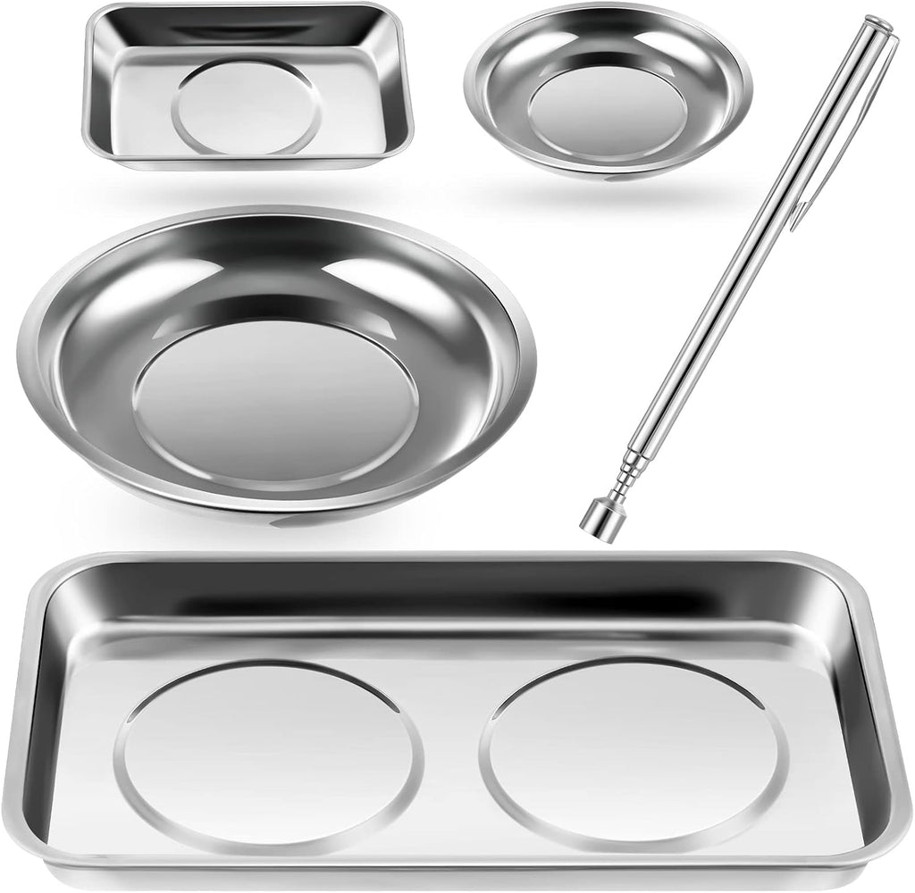 Package you can get: this package includes 4 pieces of magnetic trays, with 2 styles, square and circle, and 1 piece of magnetic pickup tool, easy for you to pick up and put small parts, enough to satisfy your using needs