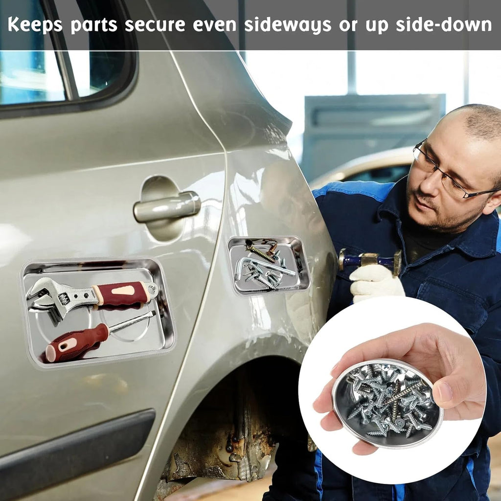 Practical to use: this magnetic parts tray is functional and useful, nice for holding a variety of small steel or metal objects that can be absorbed, such as bolts, parts and more, which can keep your parts from being lost, also convenient for you to reach when using; You can attach it anywhere within your reach