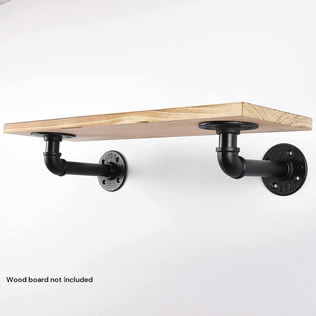 30kg Support: Made of high quality iron with water-proof black coated finish, this iron pipe floating shelf brackets can hold up to 30kg, aslo the included high strength screws made this pipe shelving can be mounted to the wall or wood sturdy.