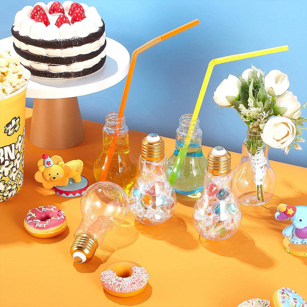 This set of small transparent bulb-shaped bottles offers a unique and creative storage solution for various uses. Made from durable plastic, these 100ml bottles are lightweight and shatterproof, making them ideal for candy, small trinkets, drinks, or decorative purposes. The screw-top lid ensures a secure seal, preventing spills and keeping contents fresh. Whether used for party favours, event decorations, or DIY craft projects, these bottles bring a touch of creativity to any setting. Their smooth surface makes them easy to clean and reuse.
