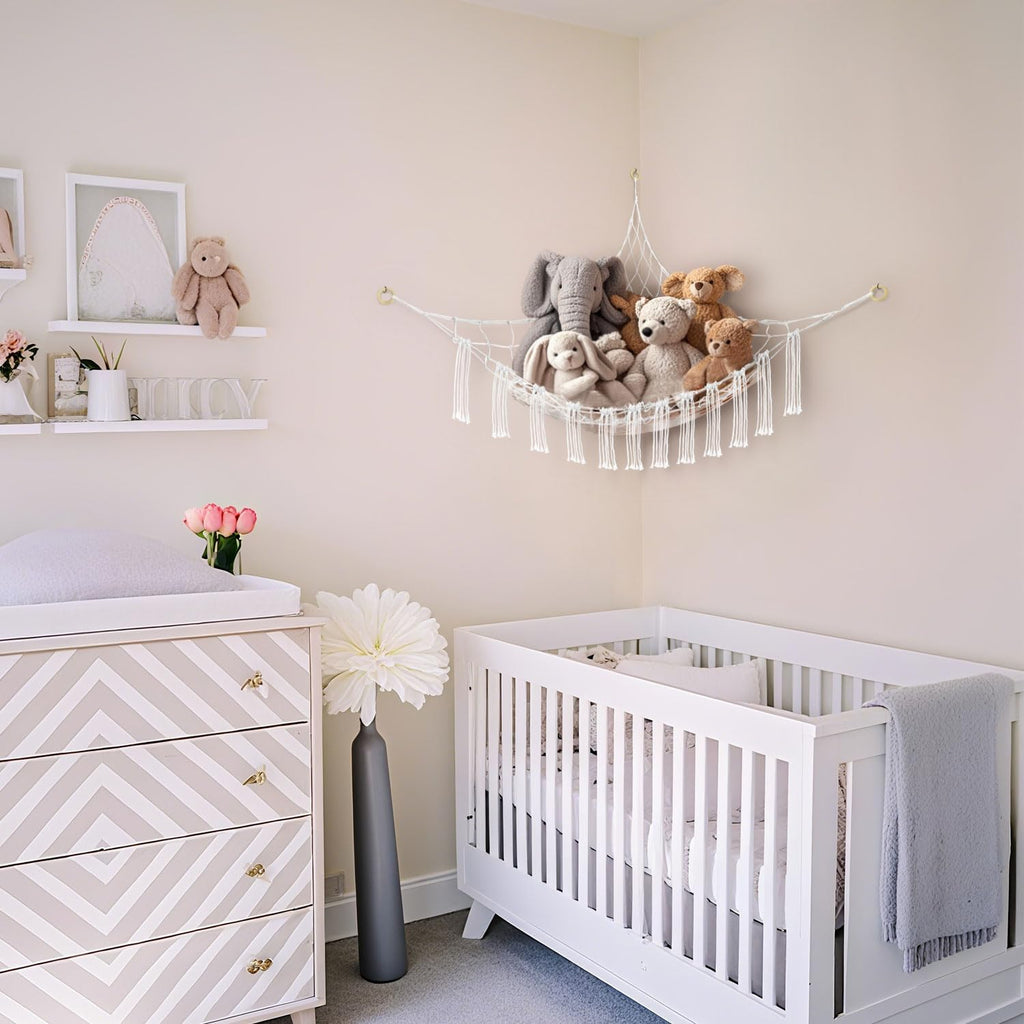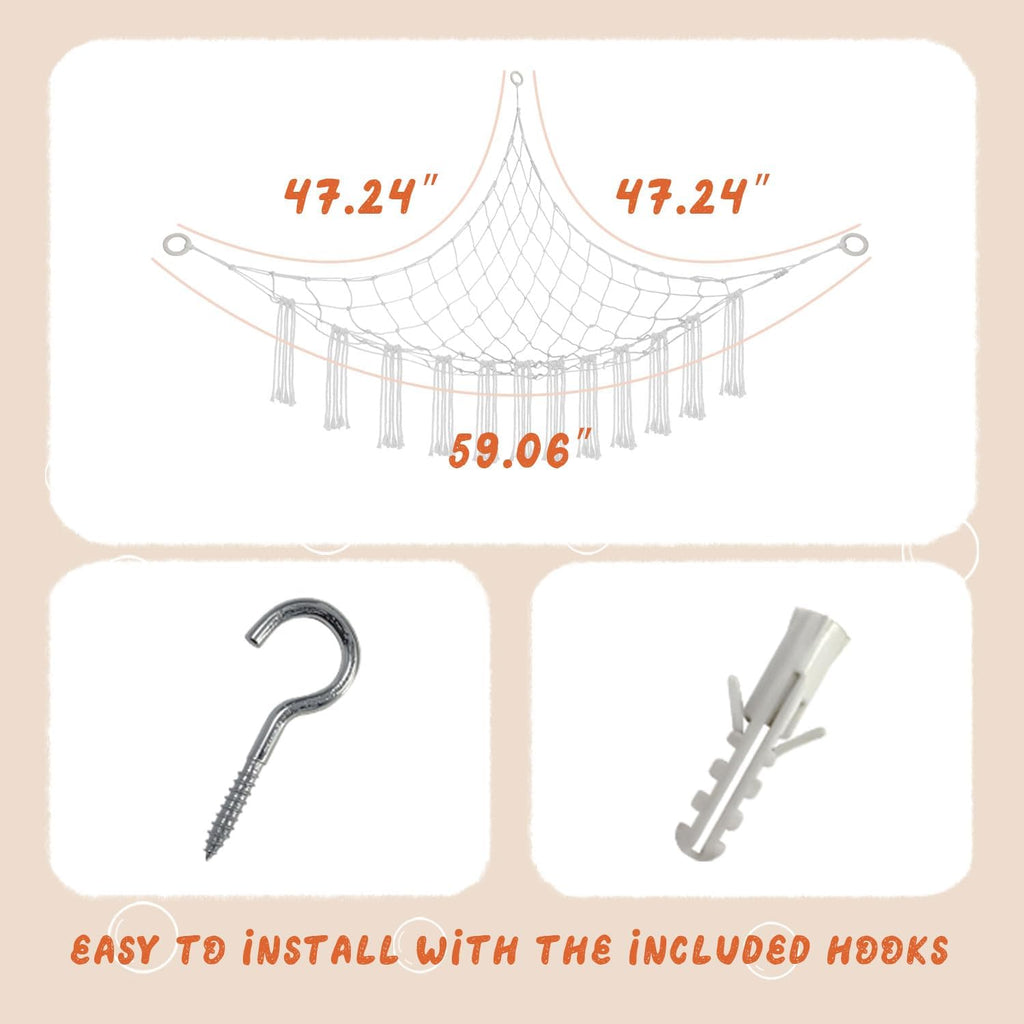 59 x 47 inches Stuffed Animal Hammock Corner Net, Plushie Net for Stuffed Animals Corner Large, Cott Hammock Holder for Home, Room, Wall, Bedroom Decor White