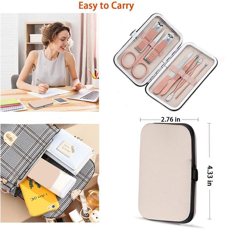 7PCS Manicure Pedicure Set Stainless Nail Clippers Kit Cuticle Grooming Case
