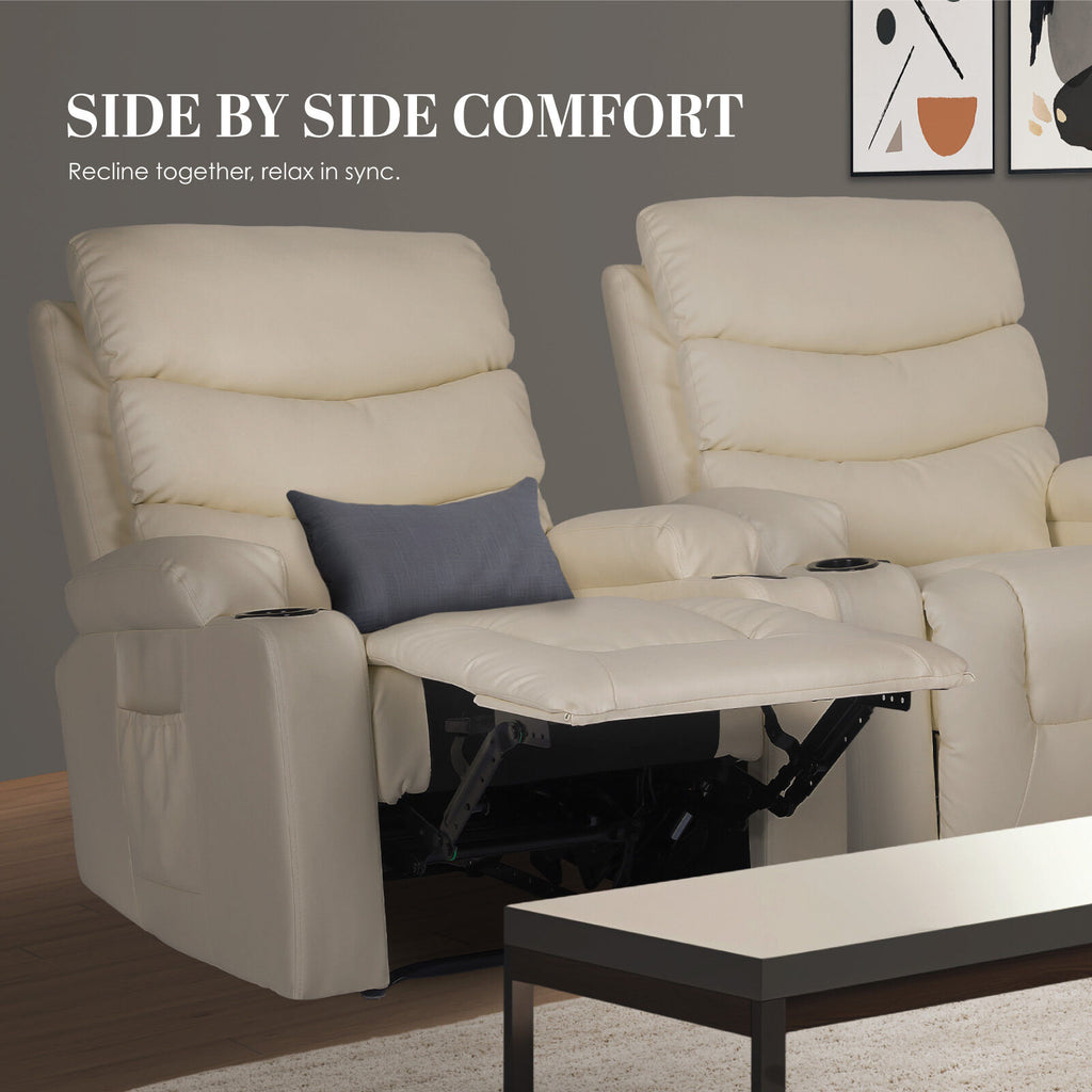 La Bella 8-Point Electric Massage Recliner Chair - PU Leather Lounge Sofa Armchair CELINA - Cream