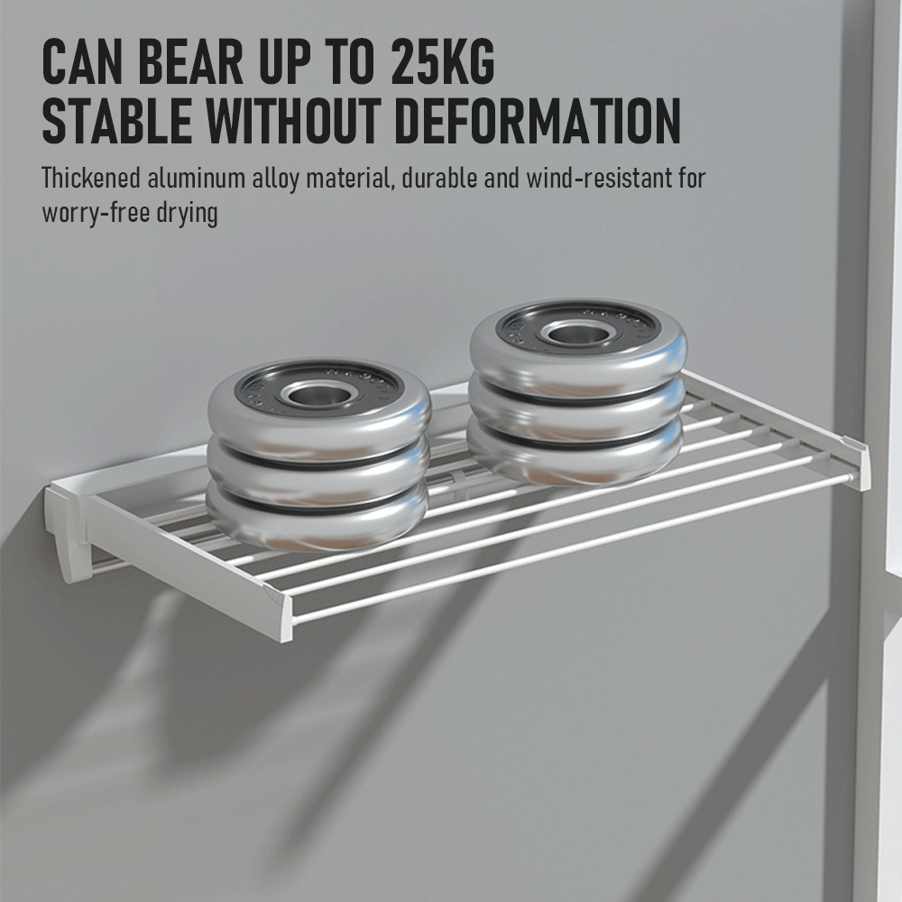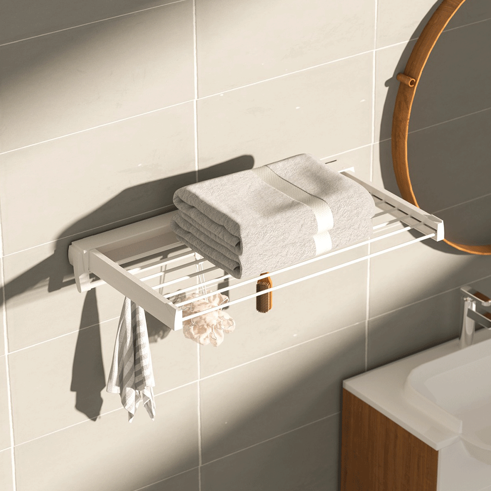 Alston Wall Mounted Drying Rack Clothes Airer Space Saver Folding Dryer Bearing Capacity 12KG Foldable Rail With Hooks Indoor Outdoor Balcony Laundry White