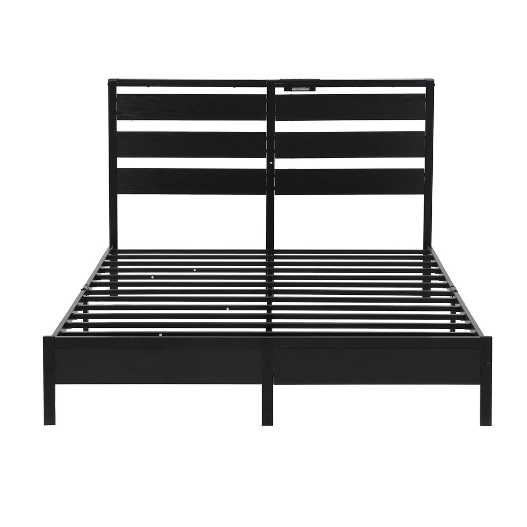 Artiss Bed Frame Double Size LED Metal Bed Base with Charging Station