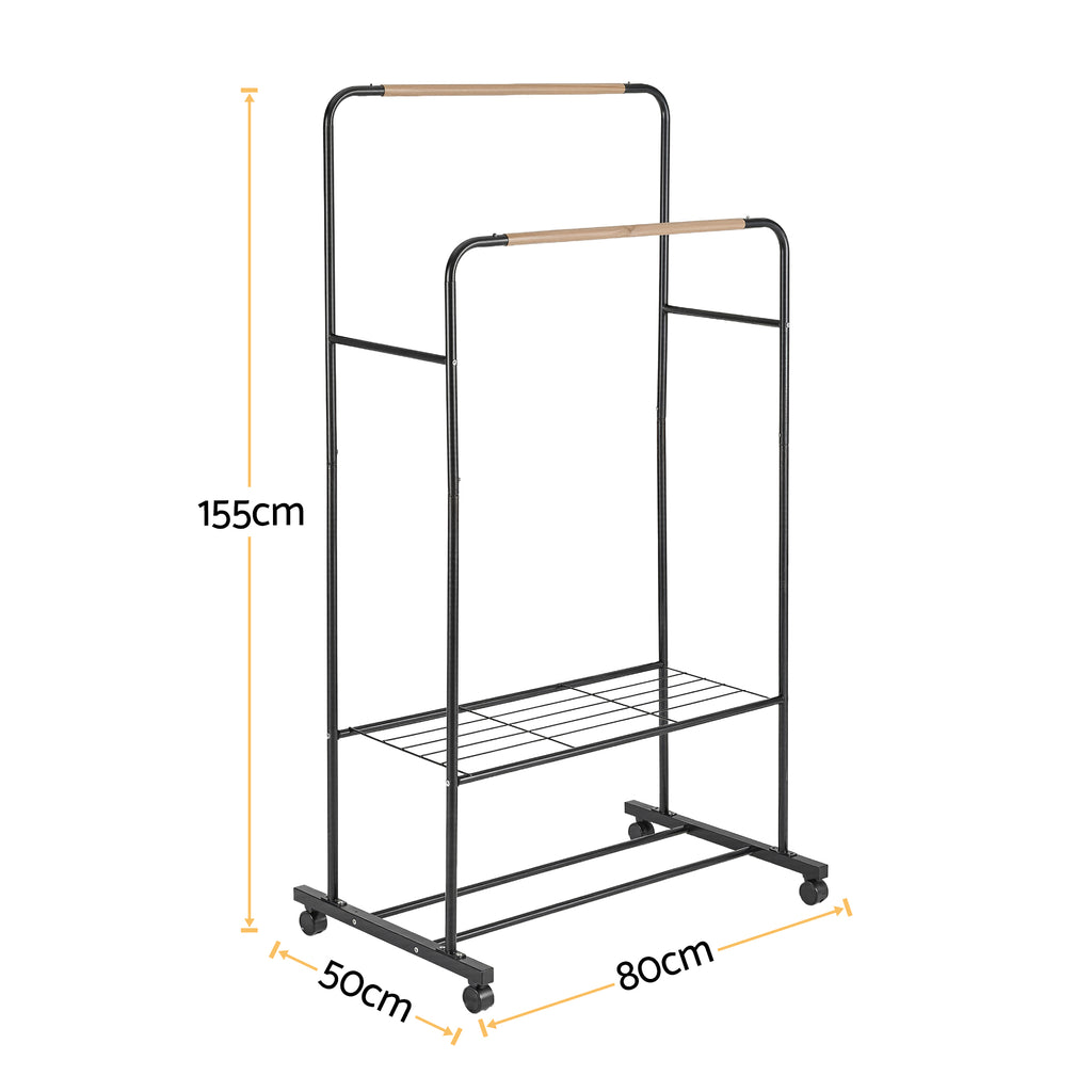 Artiss Clothes Rack Double Rod Airer Rail Coat Stand Hanger Storage Shelf