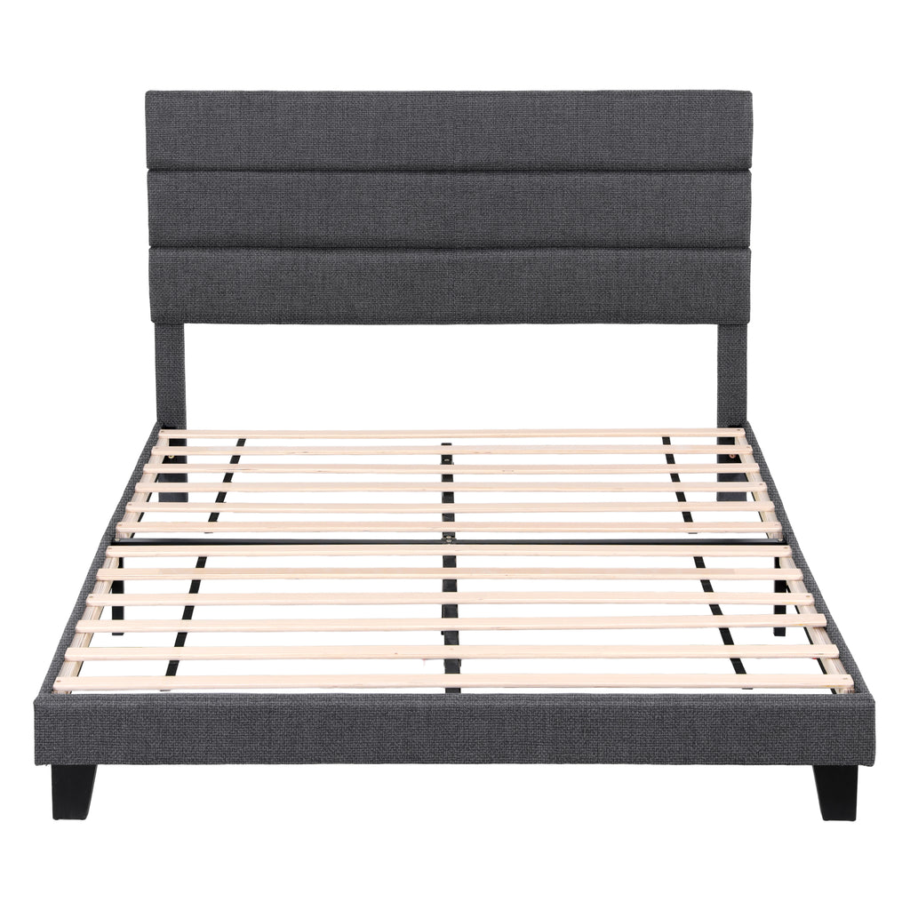 Artiss Double Bed Frame Upholstered Platform Base with Geometric Headboard Charcoal Grey Linen Wood Slats for Modern Bedroom Furniture Home Decor