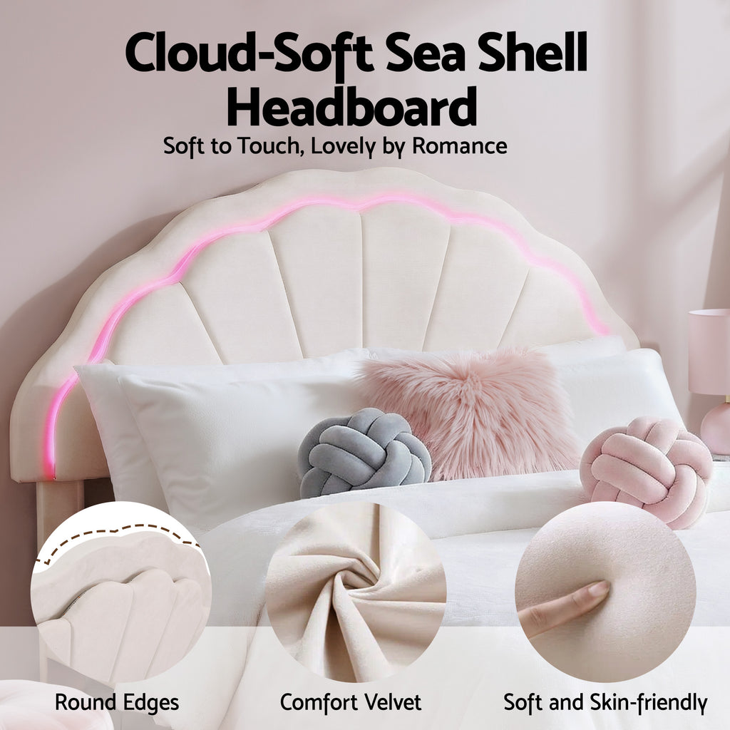 Artiss Double Bed Frame with 2 Storage Drawers Upholstered Velvet Platform Bed LED Headboard