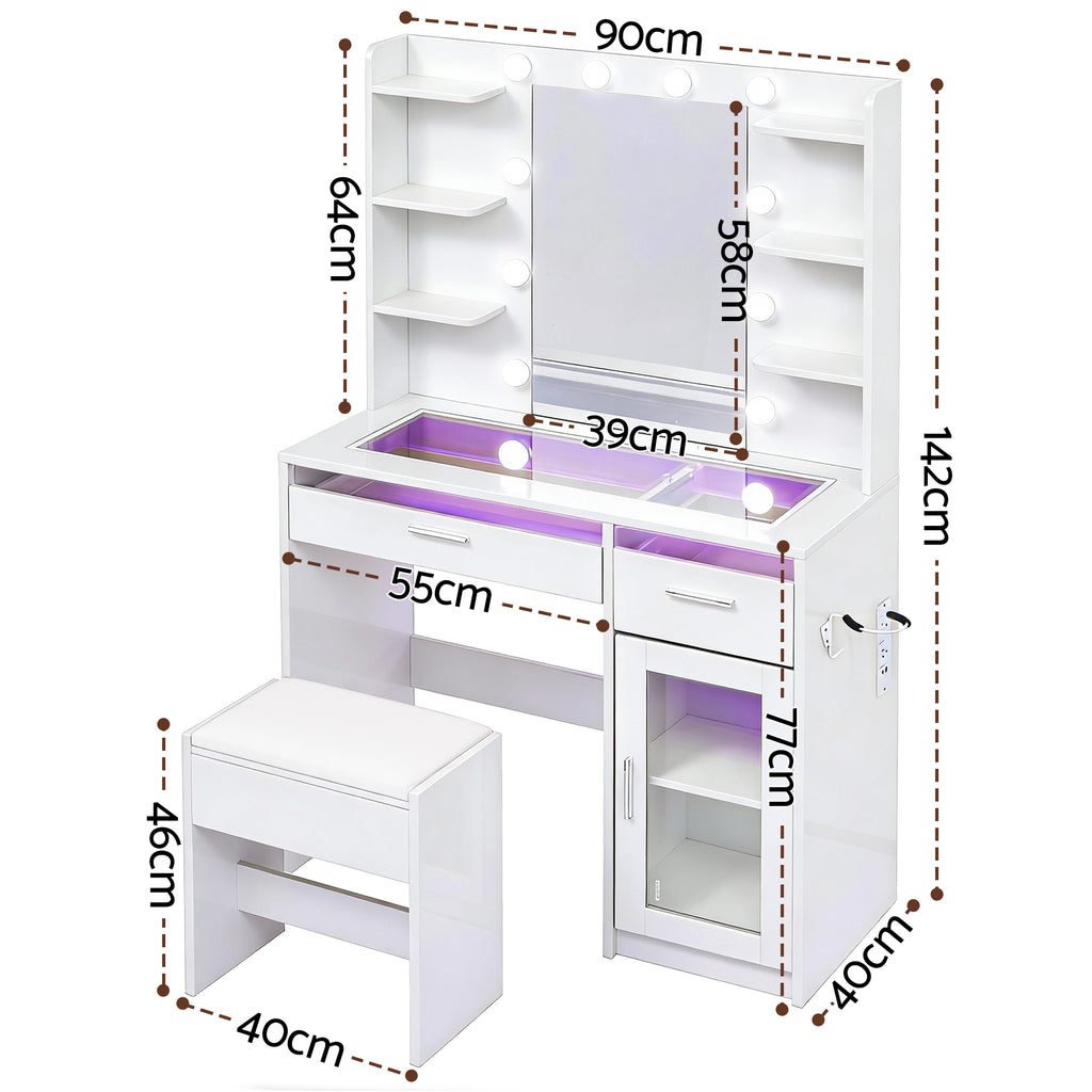 Artiss Dressing Table Vanity Desk Set 10 LED Bulbs RGB Light White