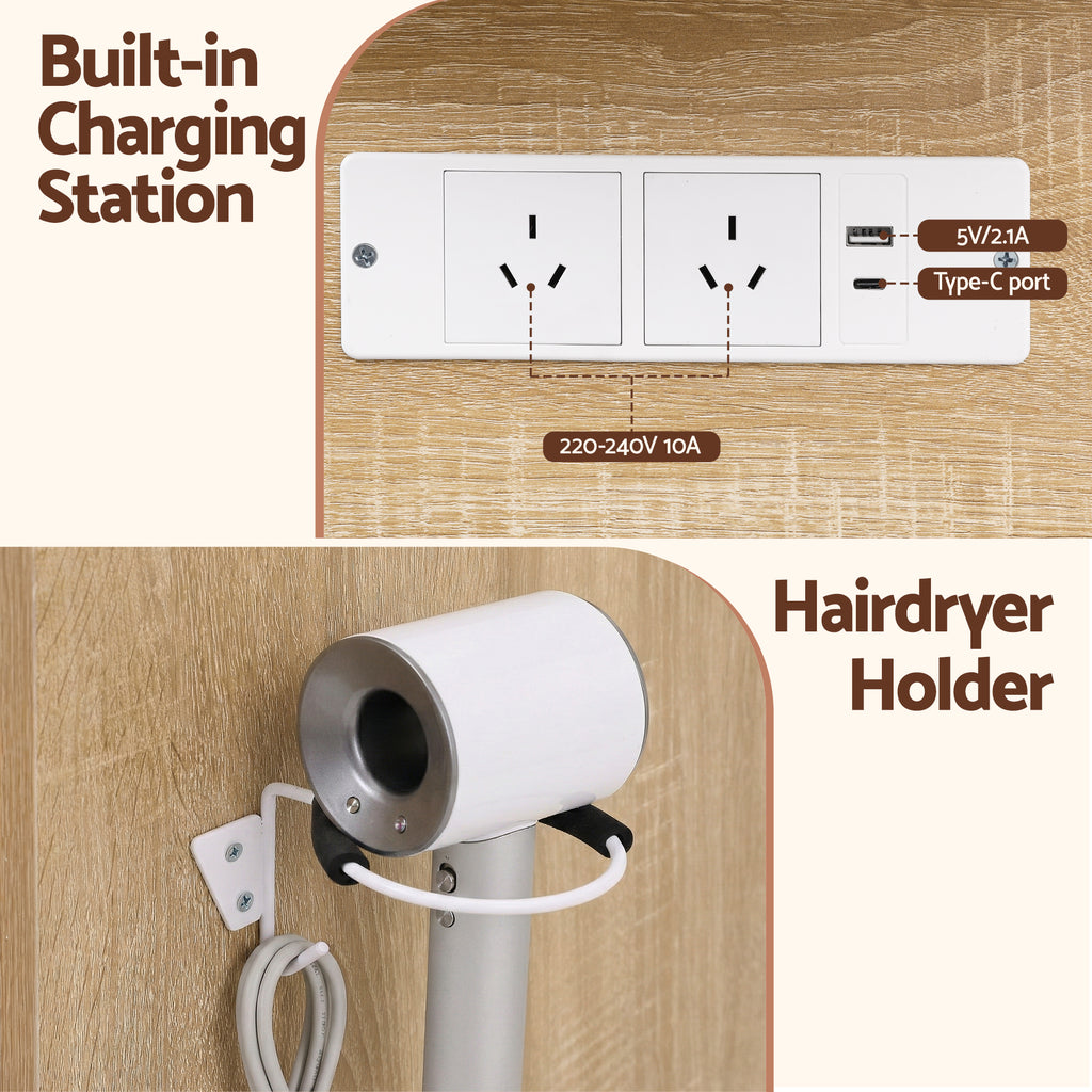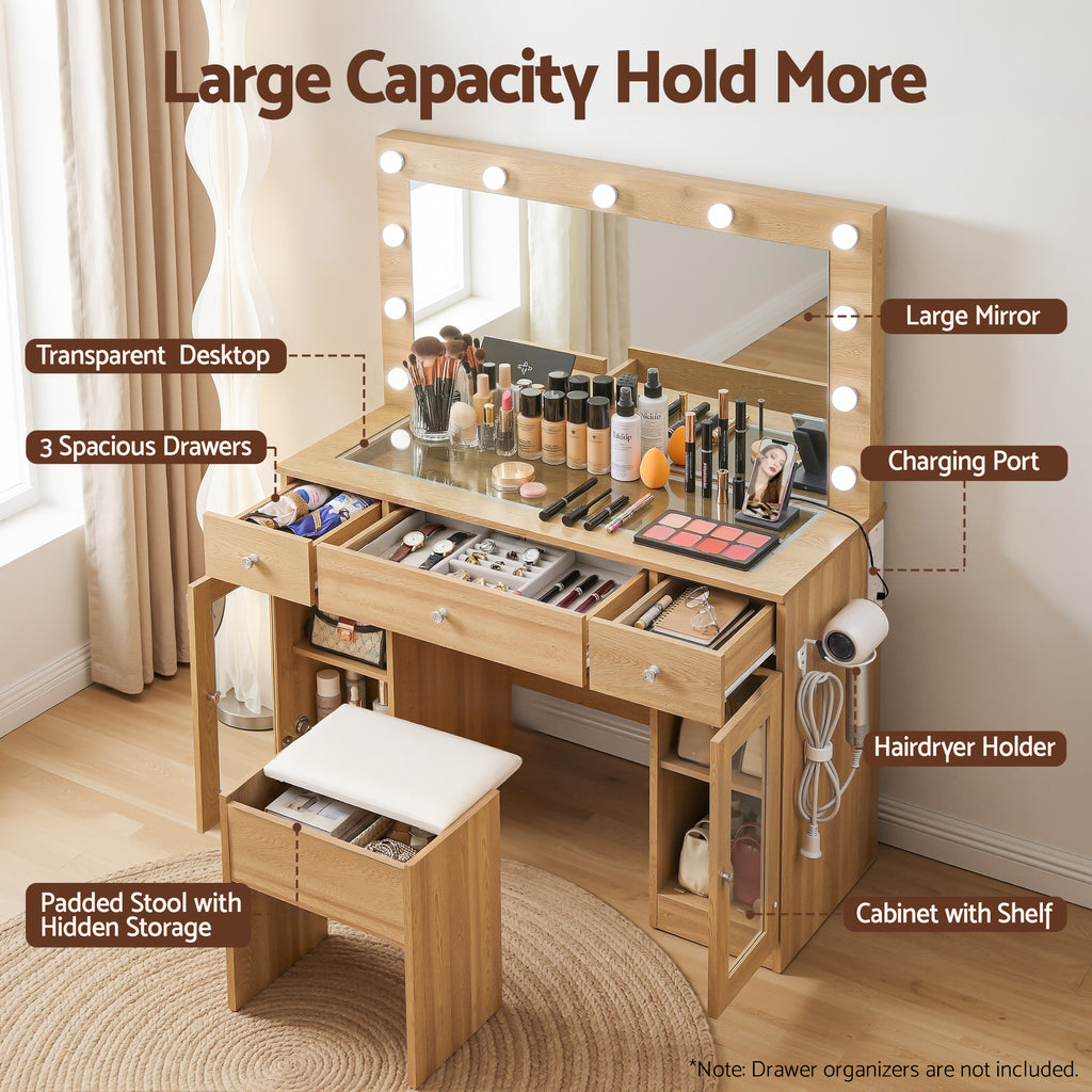 Artiss Dressing Table Vanity Desk Set LED Bulbs RGB Light Wood