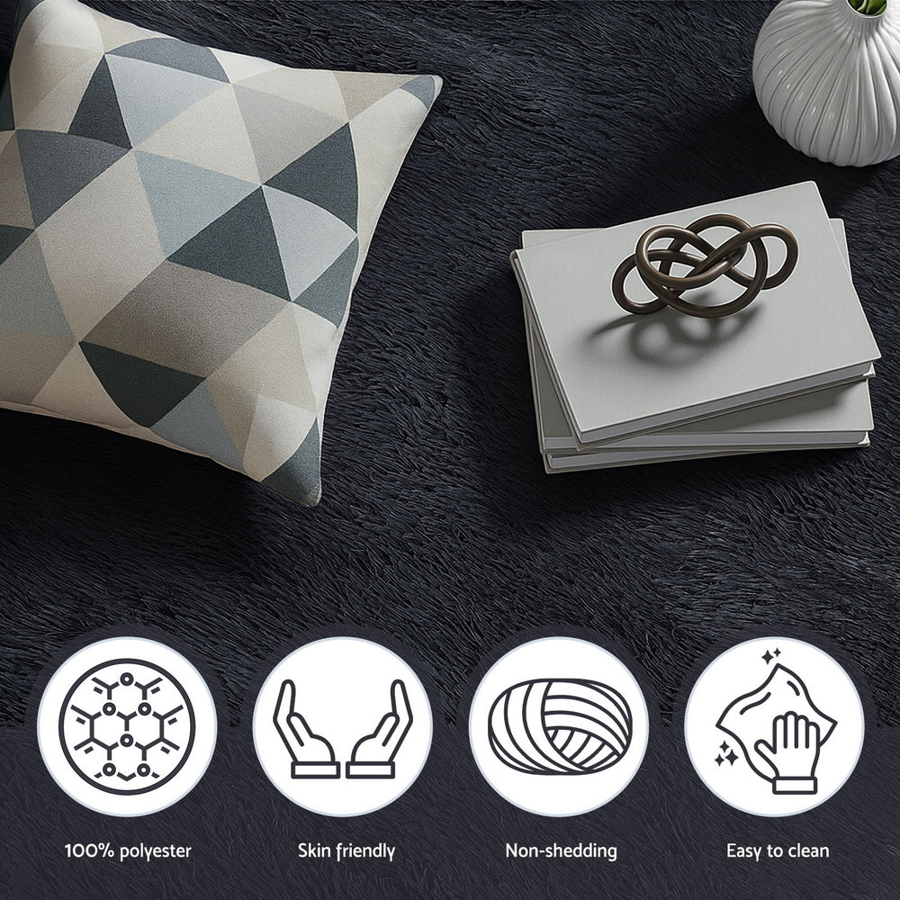 Artiss Floor Rug 200x290cm Plush Area Shaggy Rug Living Room Bedroom Carpet Black