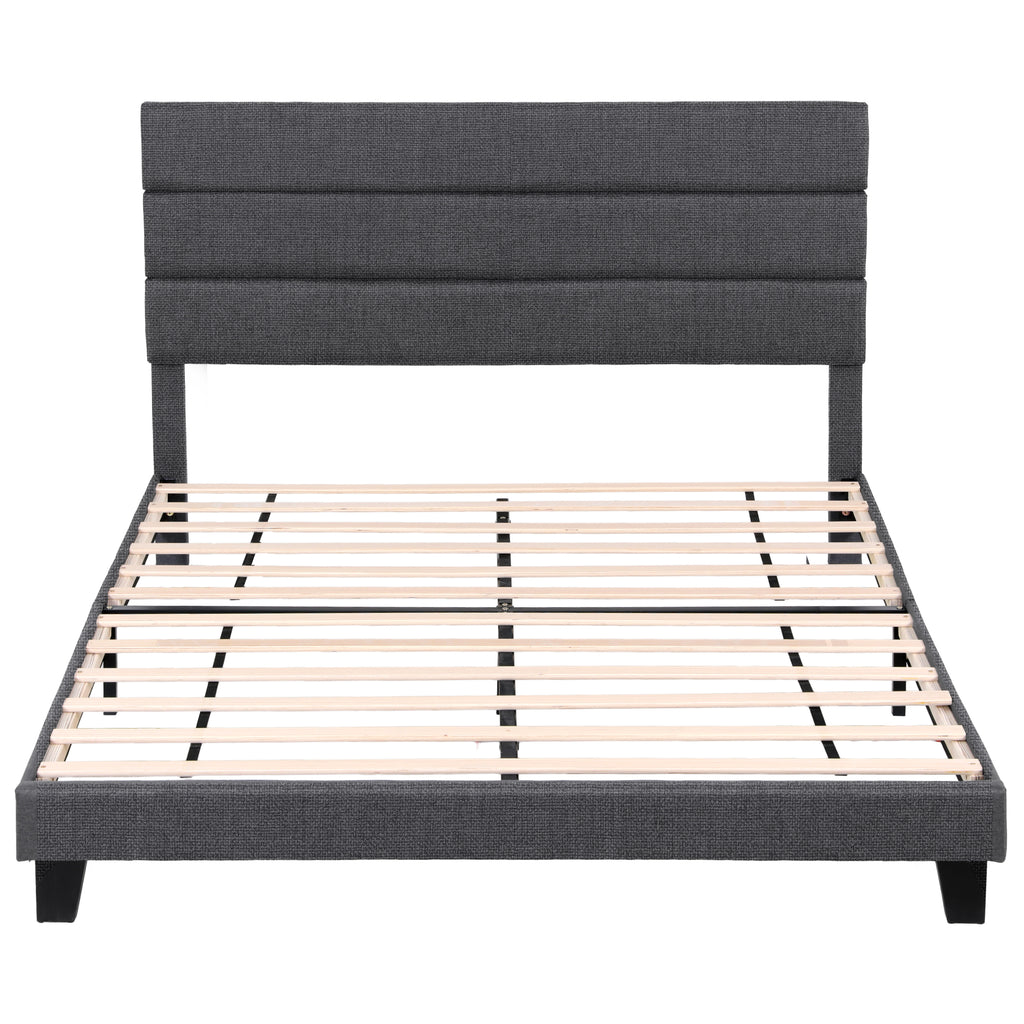 Artiss King Bed Frame Upholstered Platform Base with Geometric Headboard Charcoal Grey Linen Wood Slats for Modern Bedroom Furniture Home Decor