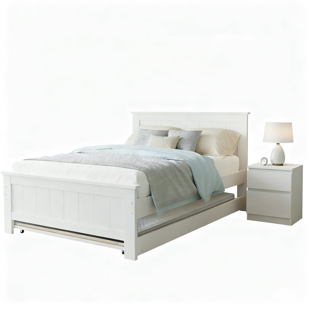 Upgrade your home with the Artiss Elvis Trundle Bed and Artiss Pepe Bedside Table—where practicality meets modern elegance!