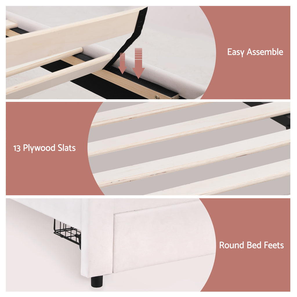 Artiss King Single Bed Frame with Storage Drawer Upholstered Velvet Platform Bed LED Headboard