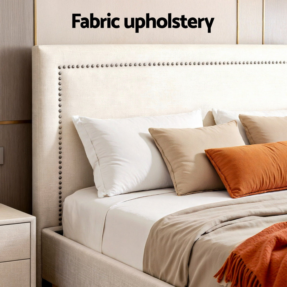 Artiss Queen Bed Frame Platform Bed Base Upholstered Headboard Linen Fabric Beige