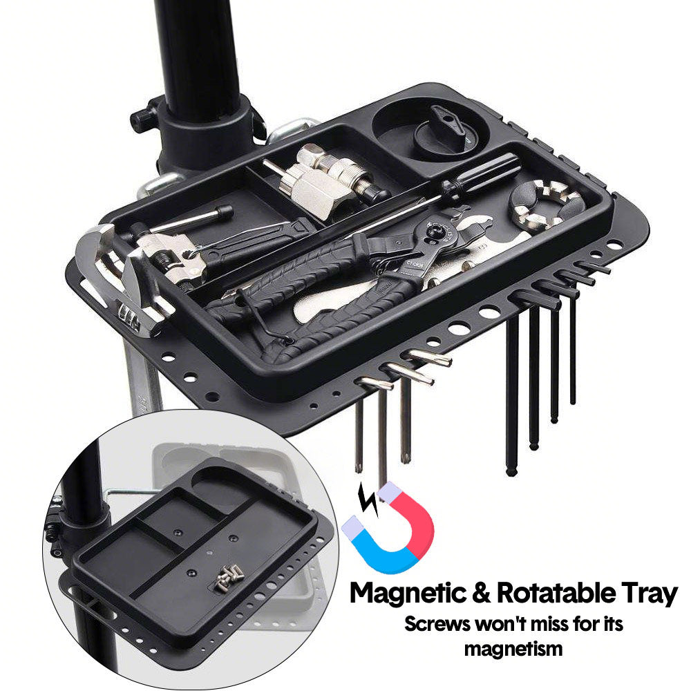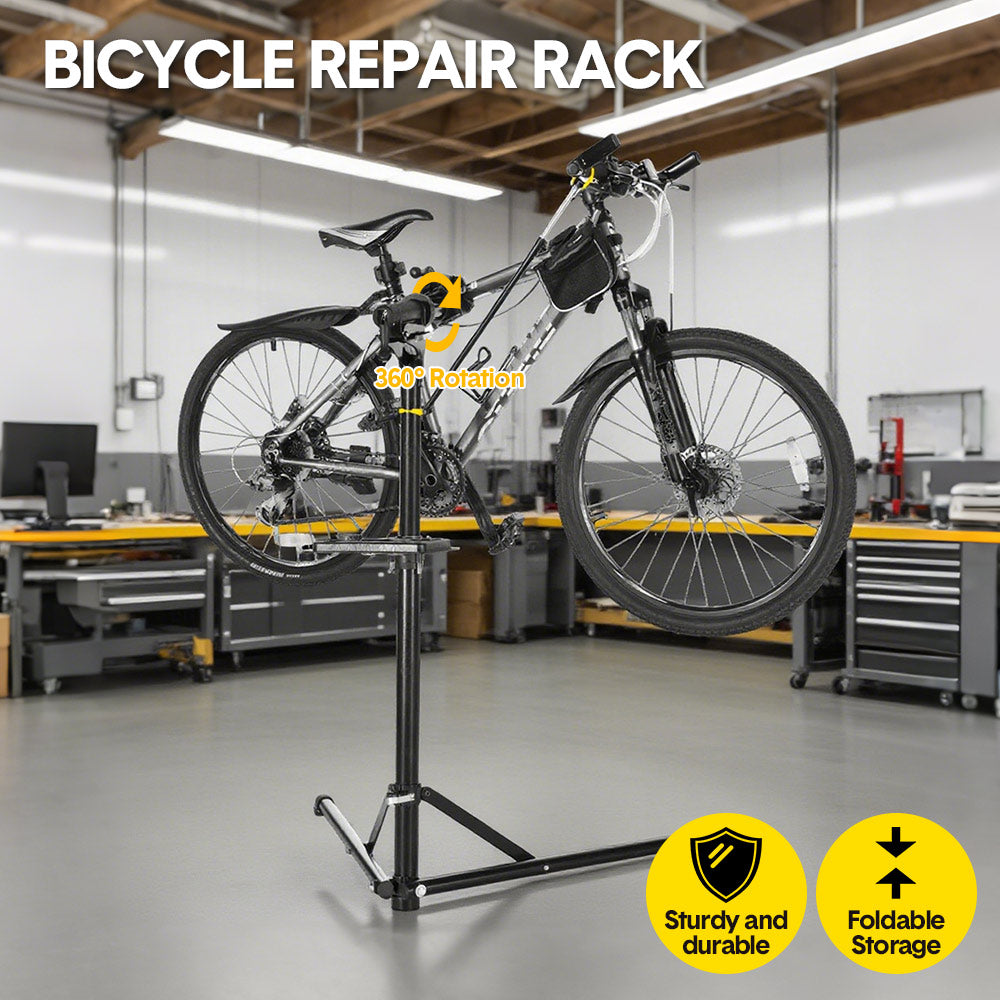 Bike Repair Rack 360 Rotating 40 to 63Inch Height Adjustable Home Bicycle Mechanic Stand Anti-Slip Foldable Maintenance Stand with Tool Tray Max Load 60lbs