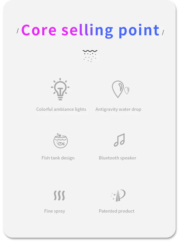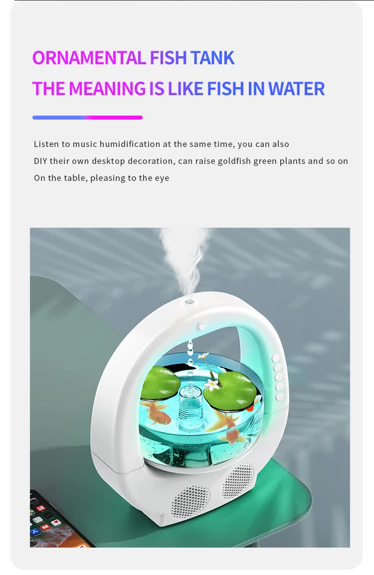Black 3-in-1 Anti-Gravity Water Drop Humidifier with Bluetooth Speaker & LED Fish Tank Light