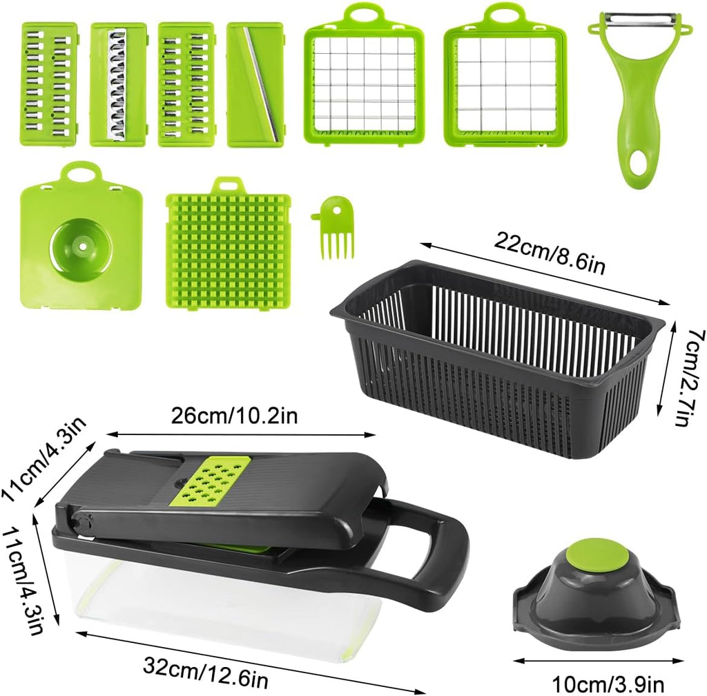 CARLA HOME Multifunctional Mandoline Vegetable Chopper 16-in-1 with Stainless Steel Blades, Storage Container & Hand Guard for Fruits & Veggies