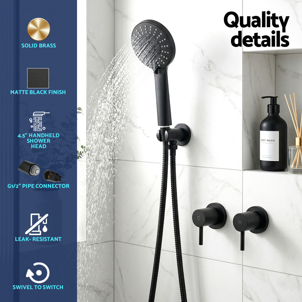 Experience luxuriously soothing showers from our Handheld Shower Head. Made from premium ABS construction with a premium matte black finish, the showerhead is durable and lightweight for long-lasting showers. Its stylish design will add elegance and value to any bathroom. A built-in water-saving filter will save you money and can be removed for greater water flow. The high-pressure water flow will have you relaxing in no time and you can take your pick of five spray modes from rain to massage. The 4.5" handheld shower head can be used to remove the stress of the day from all around the body. The G 1/2" wall end is Australian Standard, allowing it to fit most standard shower equipment. Get the spa treatment you deserve with the Handheld Shower Head.