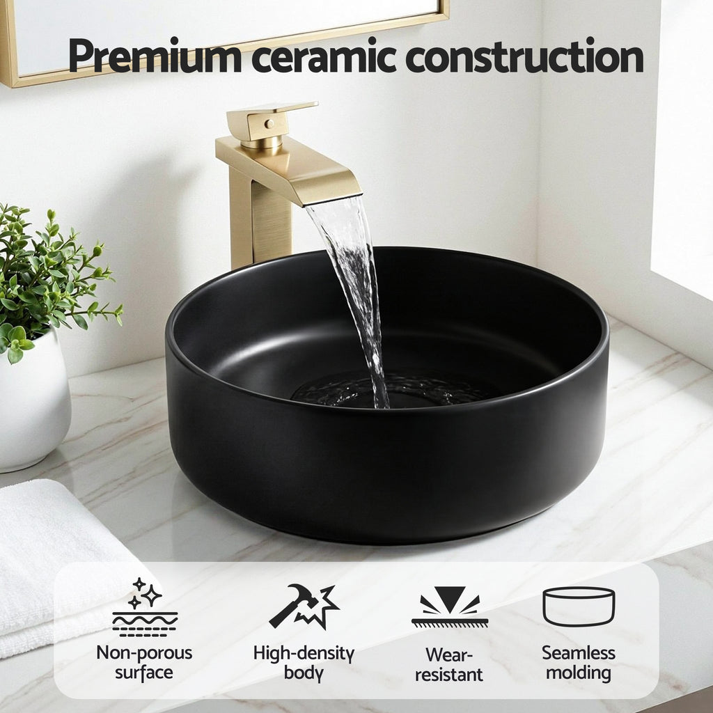 Cefito Bathroom Basin Ceramic Vanity Sink Vessel Bowl Wash Matte Black Round Countertop