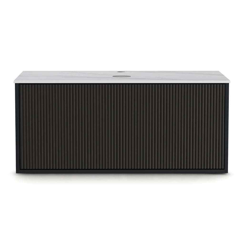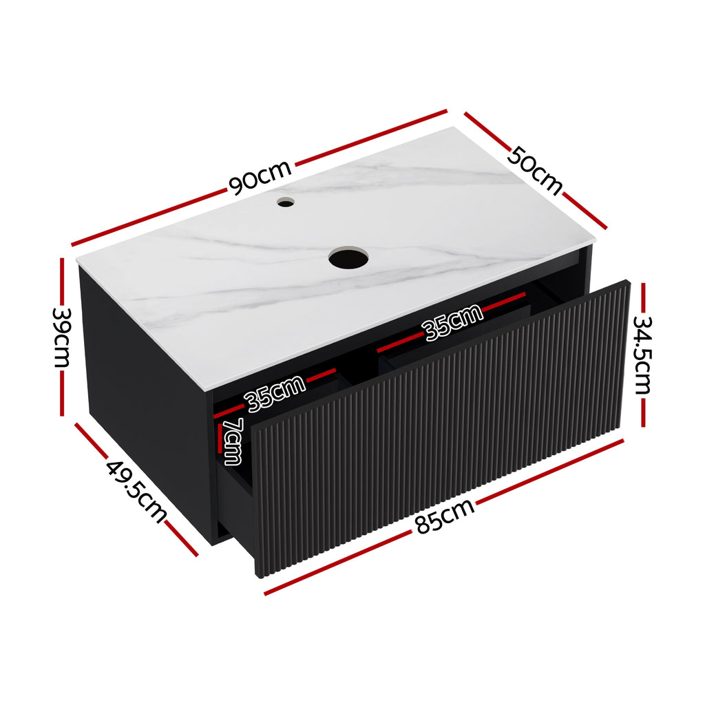 This cabinet combines modern aesthetics with maximum functionality. Featuring a durable sintered stone countertop that resists scratches and moisture, this cabinet is built to last. The handle-free soft-closing drawer adds a touch of elegance and ensures quiet operation. Constructed with quality 15mm MDF board, it offers strength and stability for daily use. Designed for easy installation, it includes a pre-drilled water outlet port and tap hole, making setup a breeze. The smooth surfaces are also easy to clean, keeping your bathroom looking pristine effortlessly. Please note, the basin is not included.