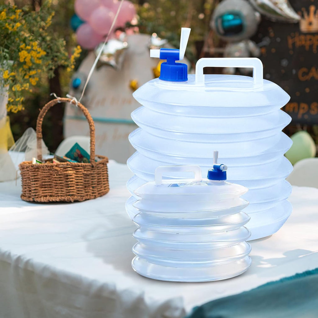 Foldable Material Made of highquality, BPAfree, foodgrade PE plastic, its environmentally friendly and can store drinking water for a long time. It replaces traditional water bags or tanks without compromising water quality. Its spacesaving, foldable design makes it easy to store.Integrated Design and Spout This highquality collapsible water bottle features an integrated design with an adjustable spout for a comfortable water flow. Its leakproof and features a spout for excellent water control.Disaster Emergency Kit This collapsible bottle is durable and agingresistant, suitable for temperatures from 20C to 80C. The collapsible design allows for convenient water storage and is very easy to use. During disasters such as hurricanes, fires, droughts, earthquakes, and floods, quickly storing water is a crucial part of your emergency kit.Size Transparent, 3L5L10L, 95g120g220g, 21cm L x 16.5cm W, 24cm L x 22cm W, 28cm L x 25cm W. Suitable for RV travel, camping, hiking, fishing, mountaineering, traveling with dogs, outdoor sports, music festivals, emergencies and in the trunk of the car.Versatile and easy to store and carry Foldable and ultralight, it rolls up to save space when not in use. Perfect for fishing, boating, camping, hiking, backpacking, mountaineering, hunting and other outdoor activities.