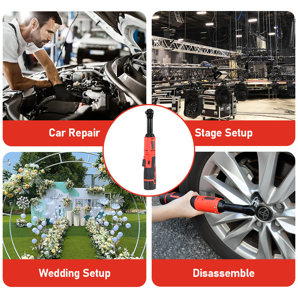 Cordless Electric Ratchet Wrench Set 12V Power Electric Ratchet Wrench 3/8inch 400 RPM Variable Speed with Sockets Two 2000mAh Batteries and Charger