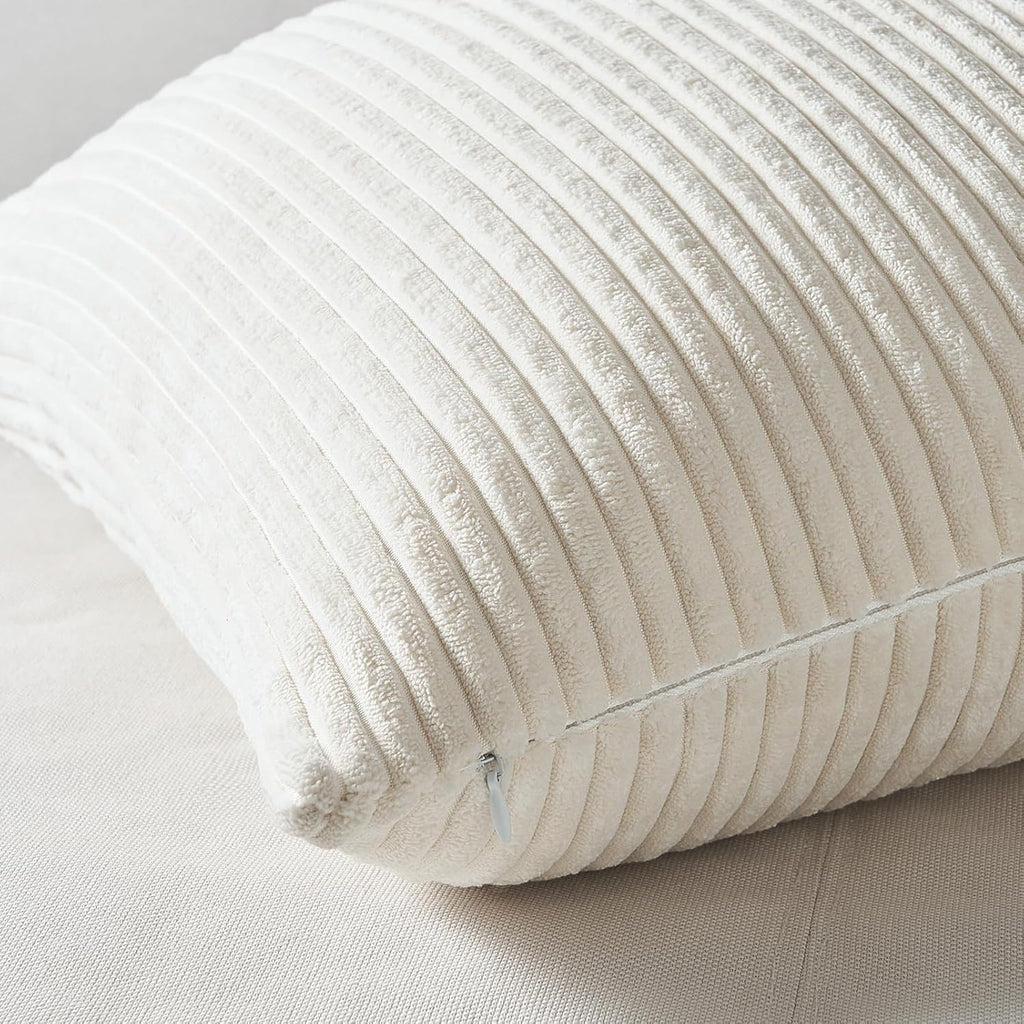 Corduroy Velvet Cushion Covers - Soft Velvet Fabric with Hidden Zipper - Stylish Mix of Beige Shades, 45cm x 45cm Pack of 4