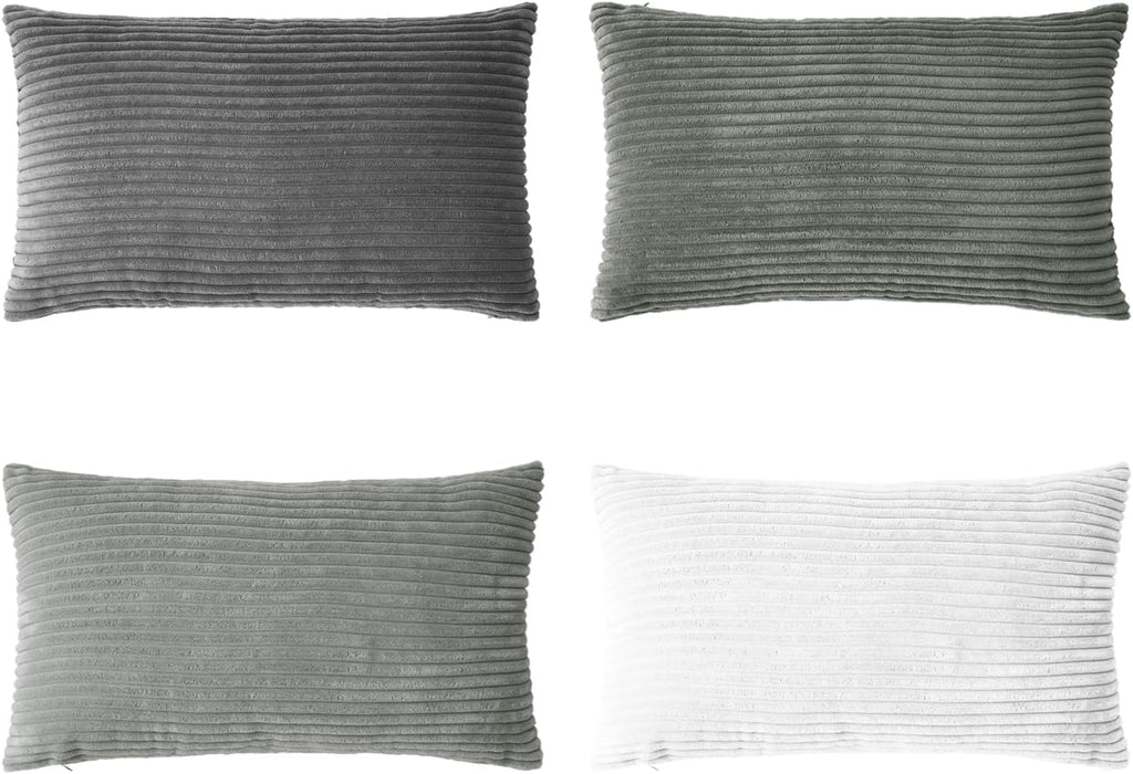 Corduroy Velvet Cushion Covers - Soft Velvet Fabric with Hidden Zipper - Stylish Mix of Grey Shades, 30cm x 50cm Pack of 4