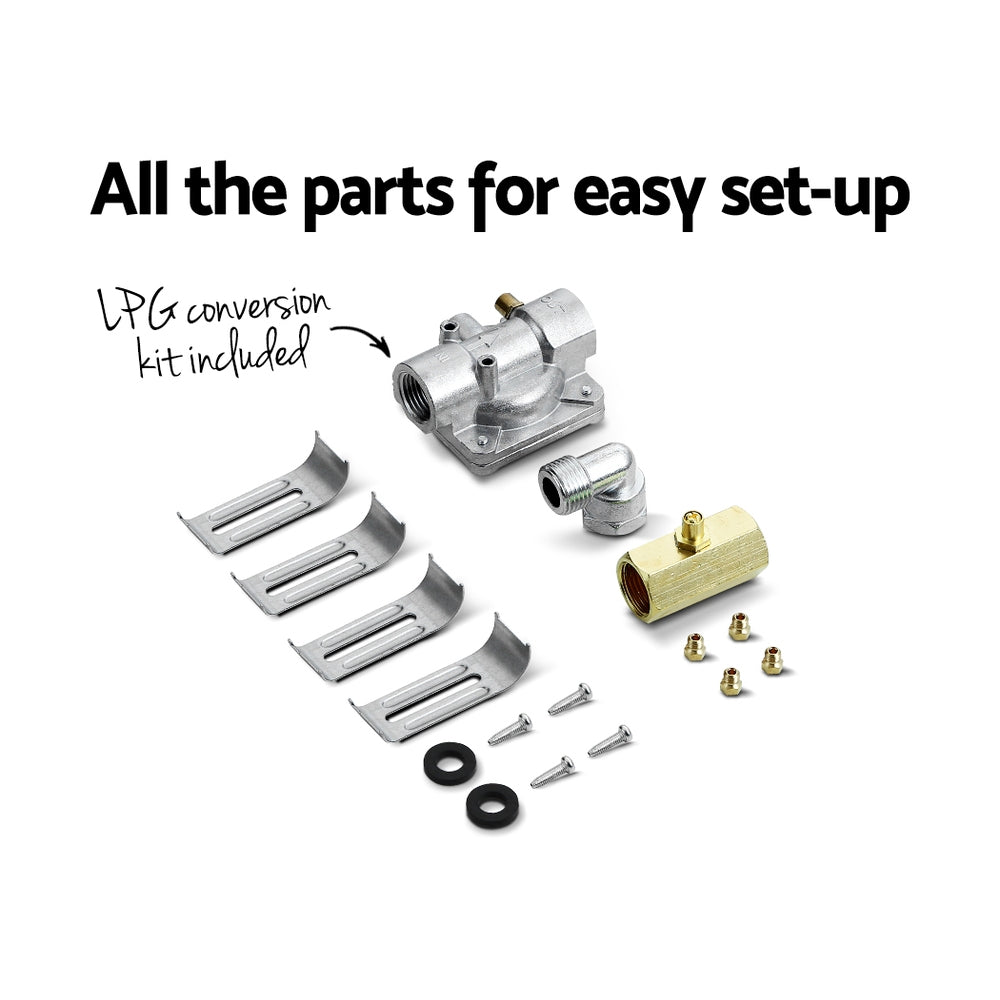 Use with natural gas (factory set) or universal LPG (with LPG kit installed)
