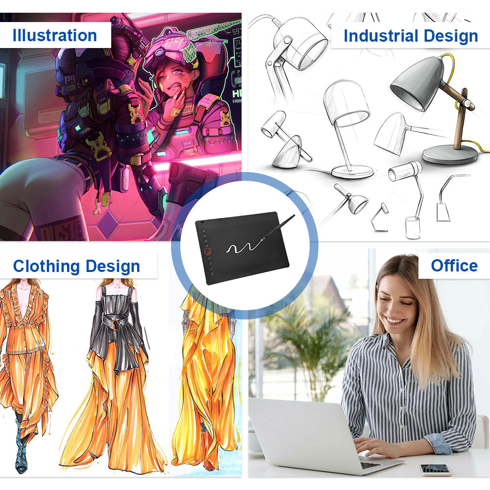 Digital Graphics Tablet Drawing Pad 8192 Levels Large Working Area 285x180mm Compatible with Win/MacOS Support PC/Mobile for Drawing Designing Teaching