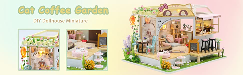 Dollhouse Miniature with Furniture Kit Plus Dust Proof and Music Movement - Cat Coffee Valentine's Day Gift Idea