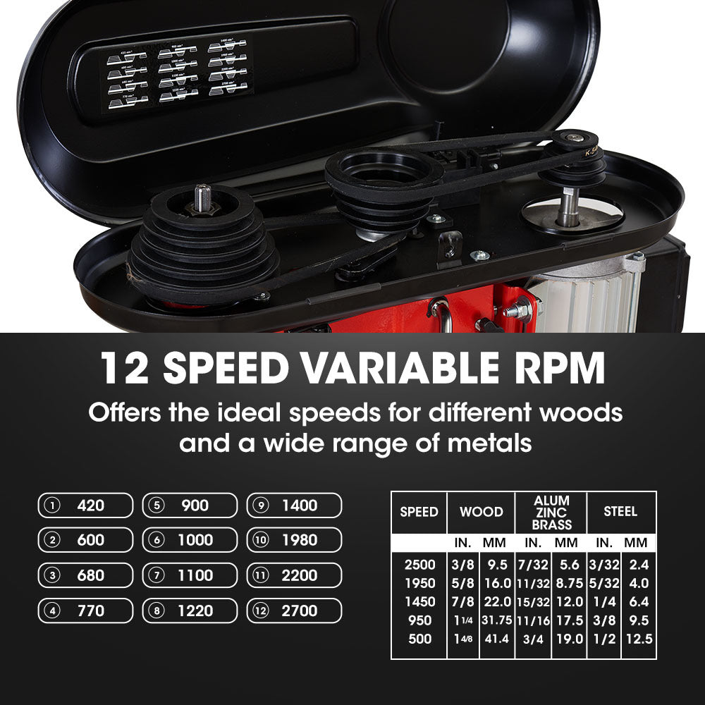 Variable Speeds (rpm): 420 / 600 / 680 / 770 / 900 / 1000 / 1100 / 1220 / 1400 / 1980 / 2200 / 2700