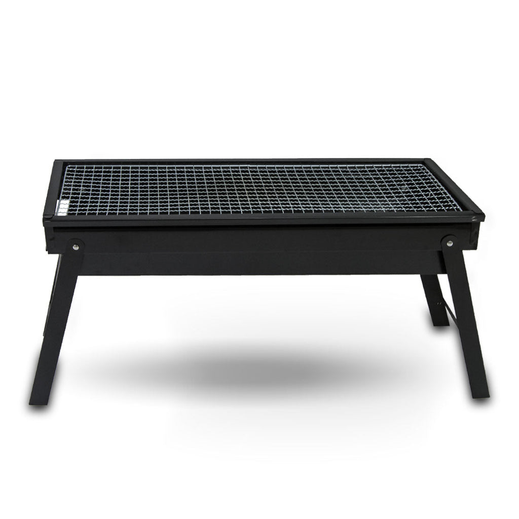 Compact and portable Charcoal Barbecue grill. This BBQ makes it easy to enjoy your favourite barbecued foods when you're out and about. It is made from strong Cast Iron construction that has a foldable, sturdy legs and handles that add to the overall robust design. The design has a deep base with wide grill tray so there's plenty of room for steak, chops and sausages. This barbecue is perfect for festivals, beach camping trips or even your own backyard thanks to its size and design. It comes with chrome steel grill so it can cook a wide range of meats, fish and vegetables