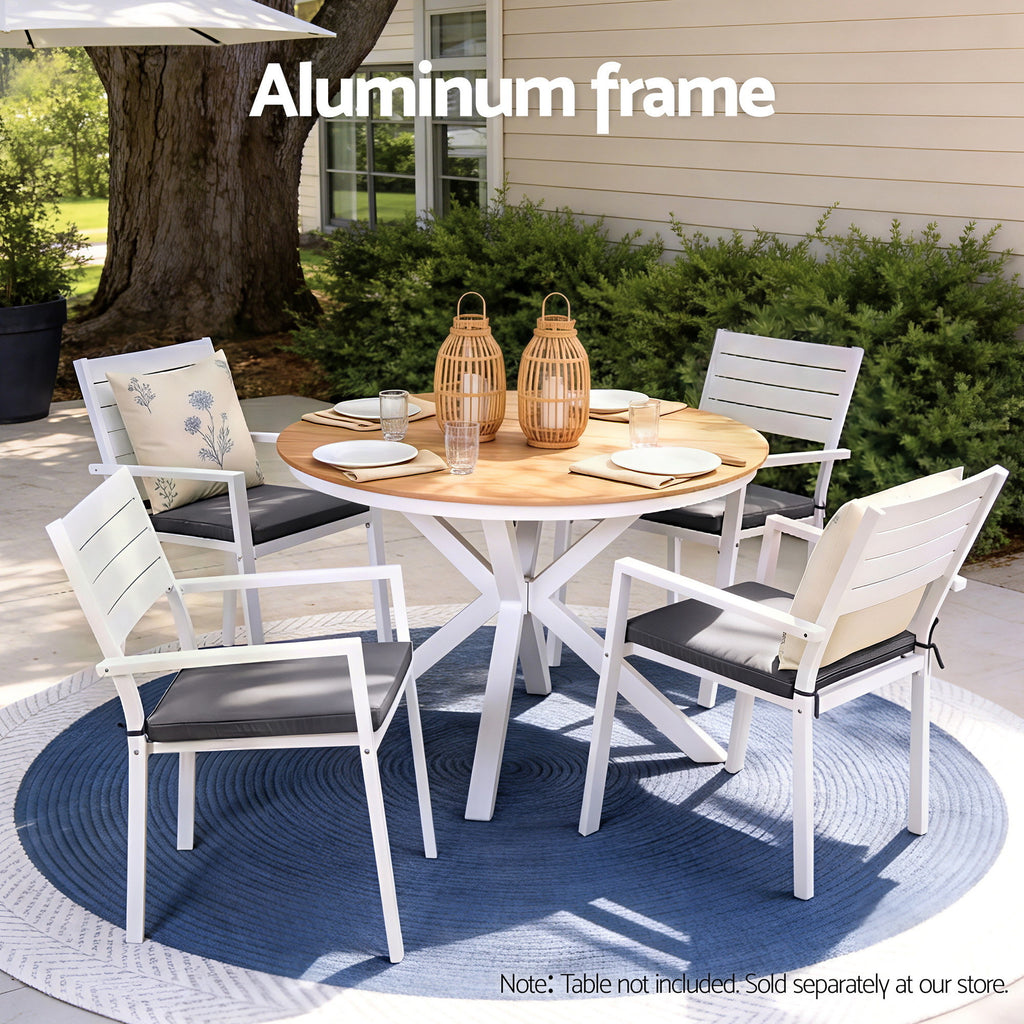 Gardeon 4PC Outdoor Dining Chairs Stackable Aluminum Lounge Chair Patio Furniture