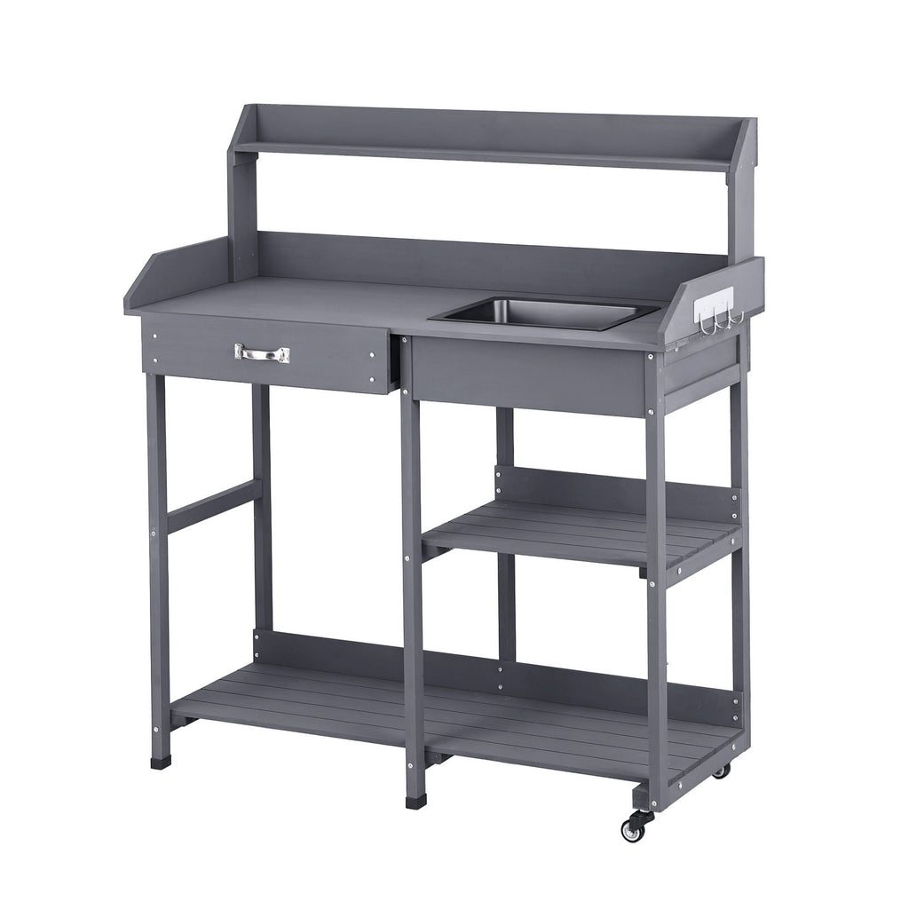 Gardeon Outdoor Potting Bench Table Storage Cabinet Potters Garden Workstation Grey